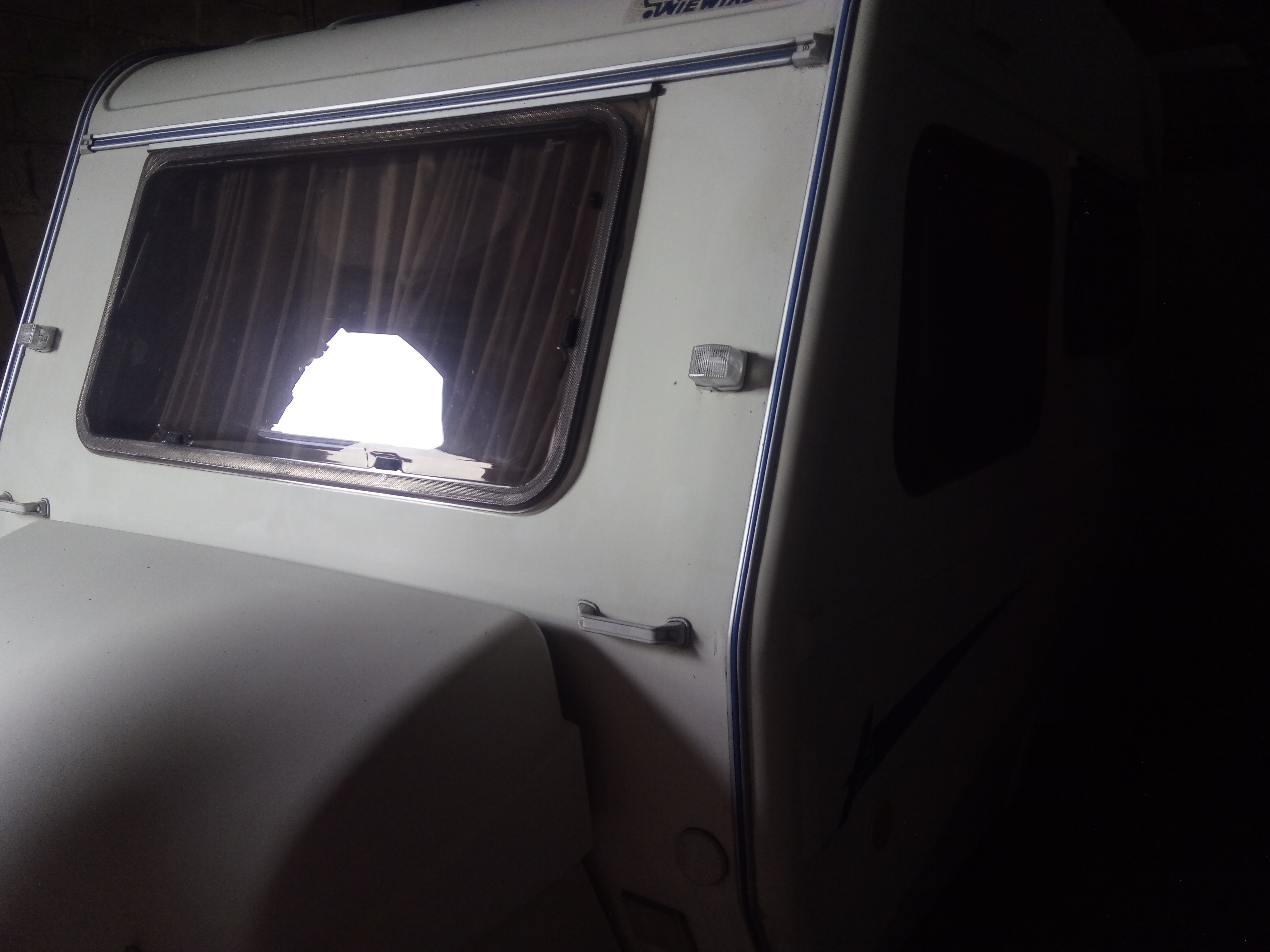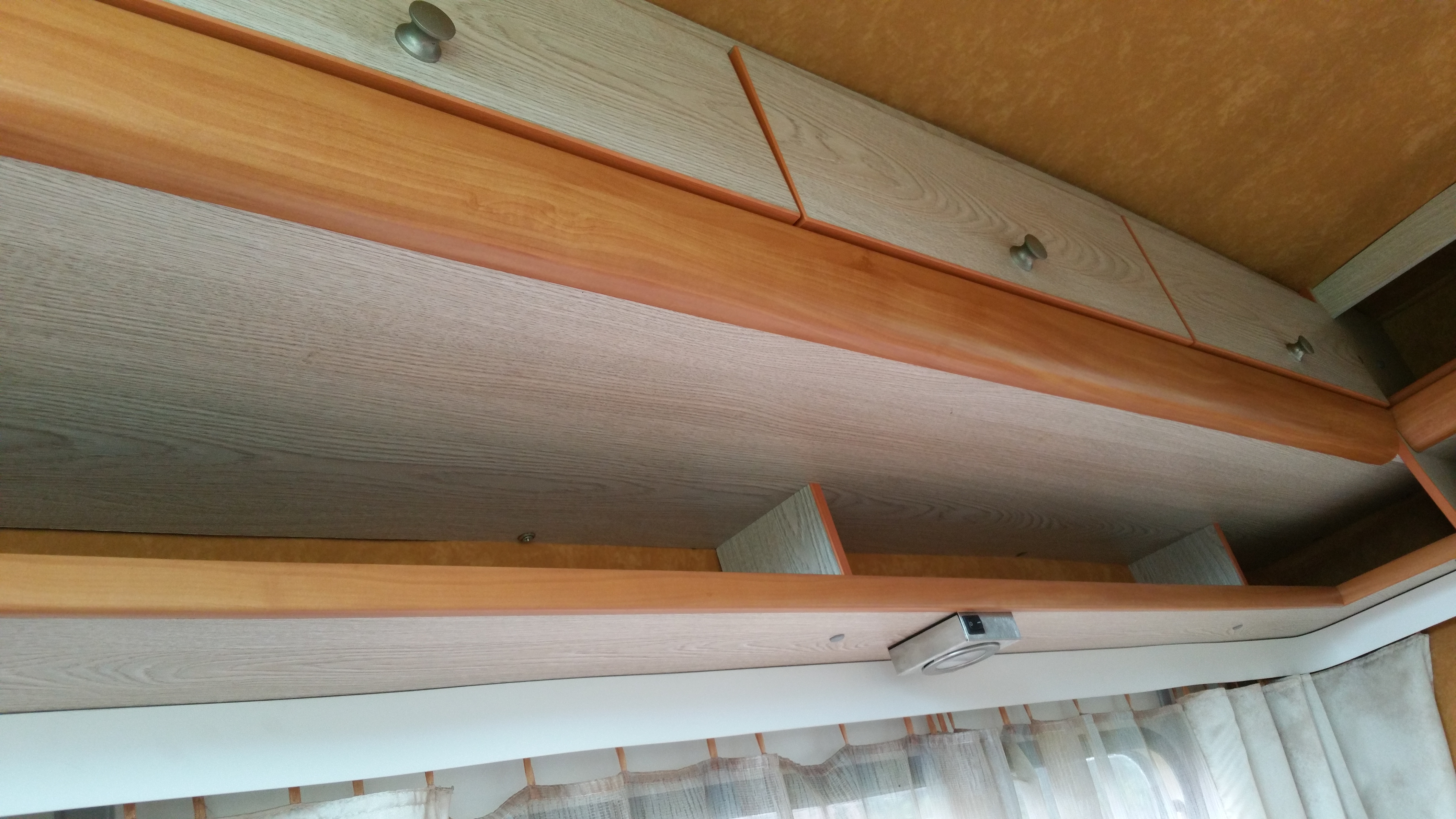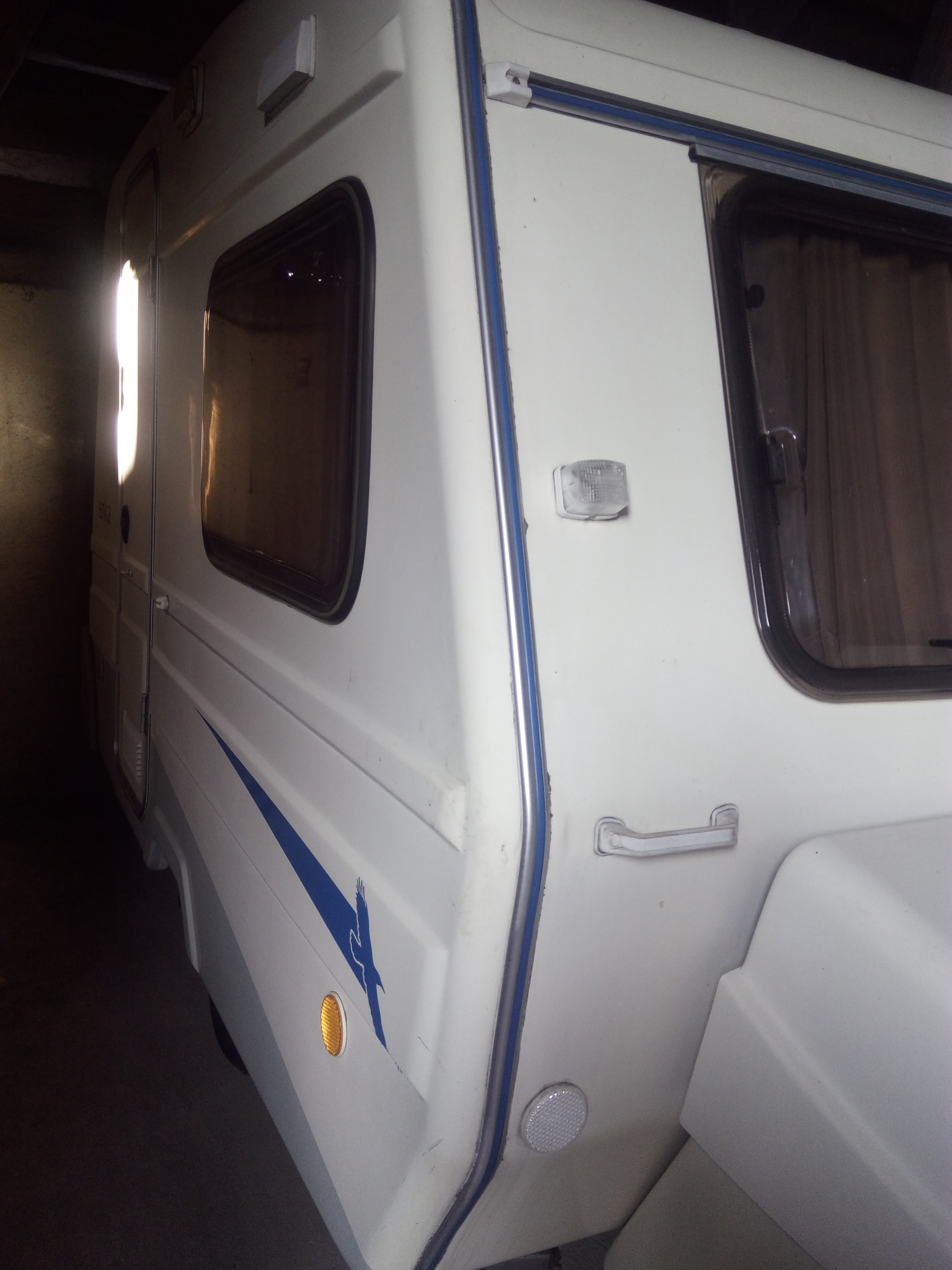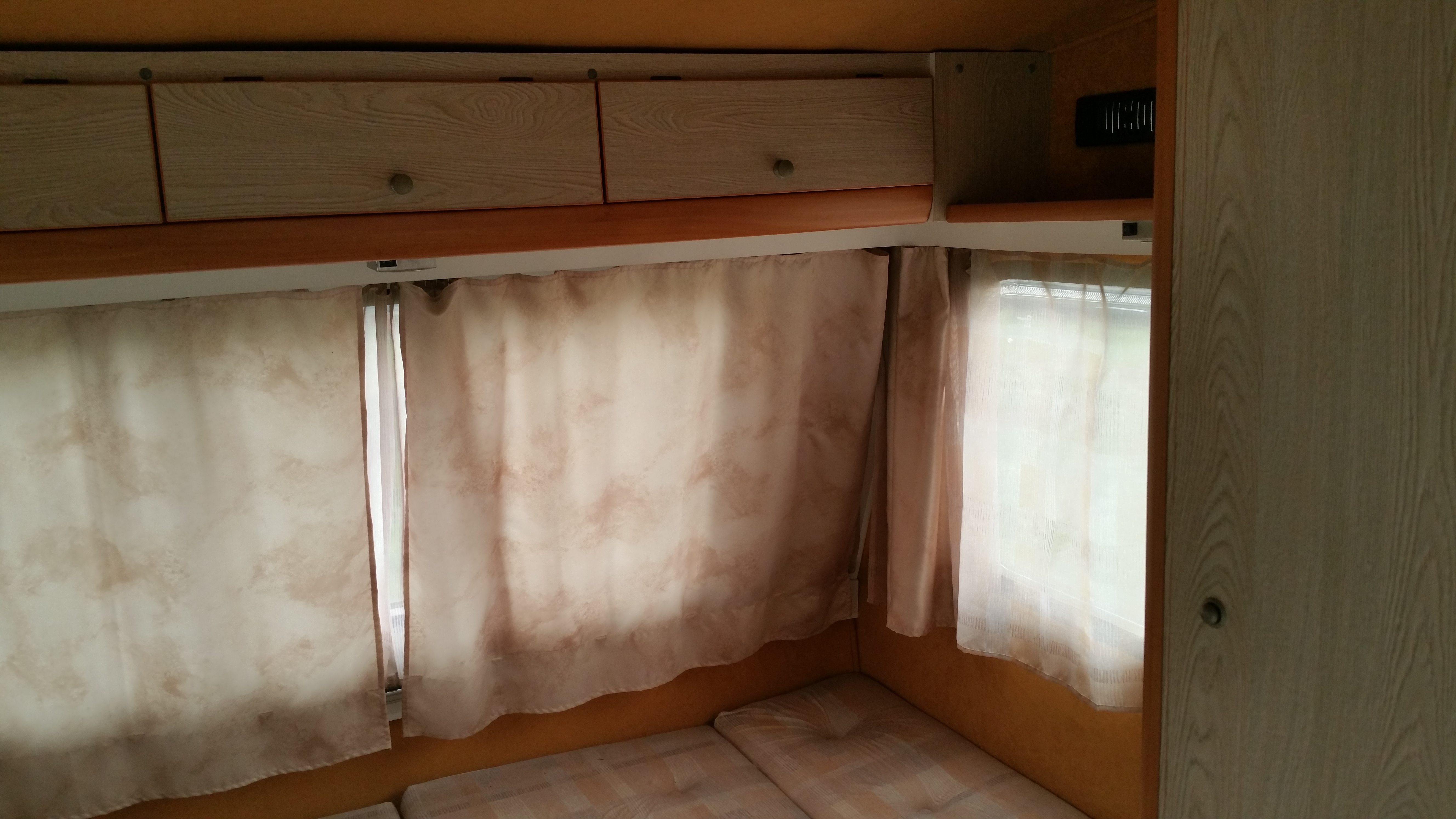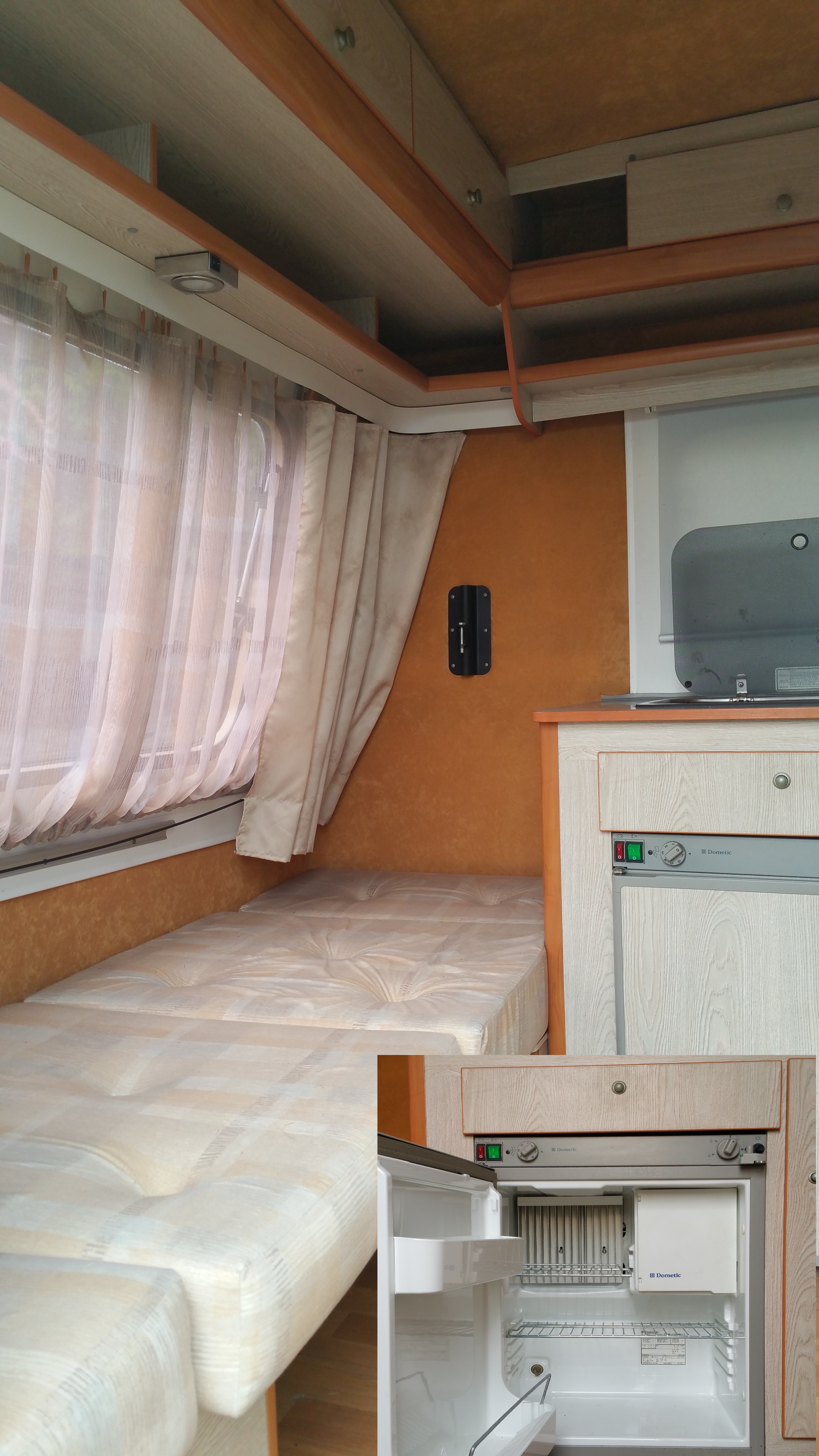 Rok mnie nie było, ale nic wewnątrz nie robiłem. Jedyne co chciałbym zmienić, to planuje założyć rolety w okna zamiast zasłonek/firanek. Jedyne foto wnętrza jakie posiadam na teraz, to otrzymane w maju 2016 w poczcie elektronicznej od sprzedawcy. Wykładziny nie ma konieczności poprawiać. Przyczepka sucha i pachnąca.