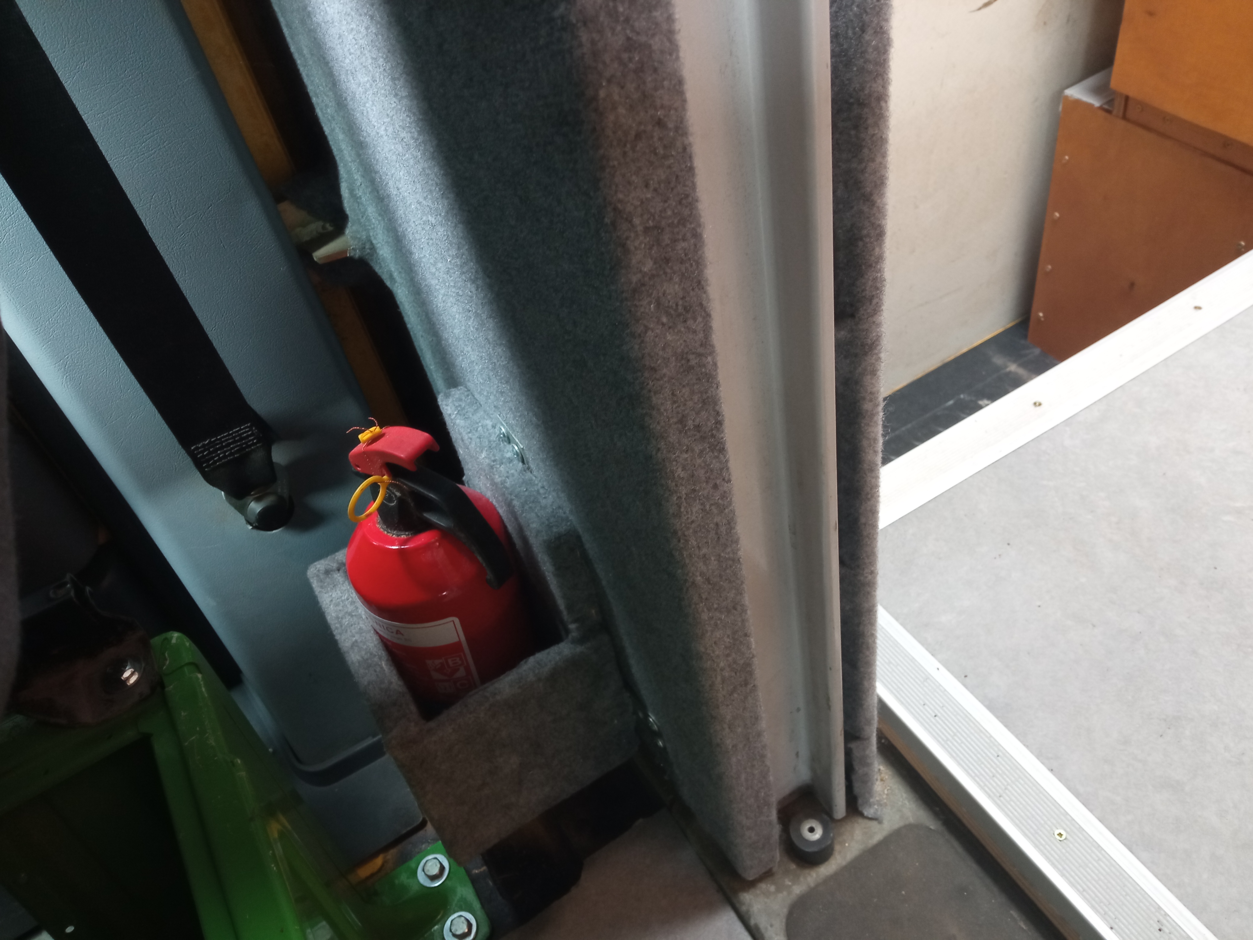 Na pierwszy rzut wleciał stylowy koszyczek na gaśnicę, bo początkowo jeździliśmy bez gaśnicy, a potem się okazało że kupiona gaśnica nie pasuje do żadnego uchwytu, i walała się luzem po kabinie, a to jednak słabe.