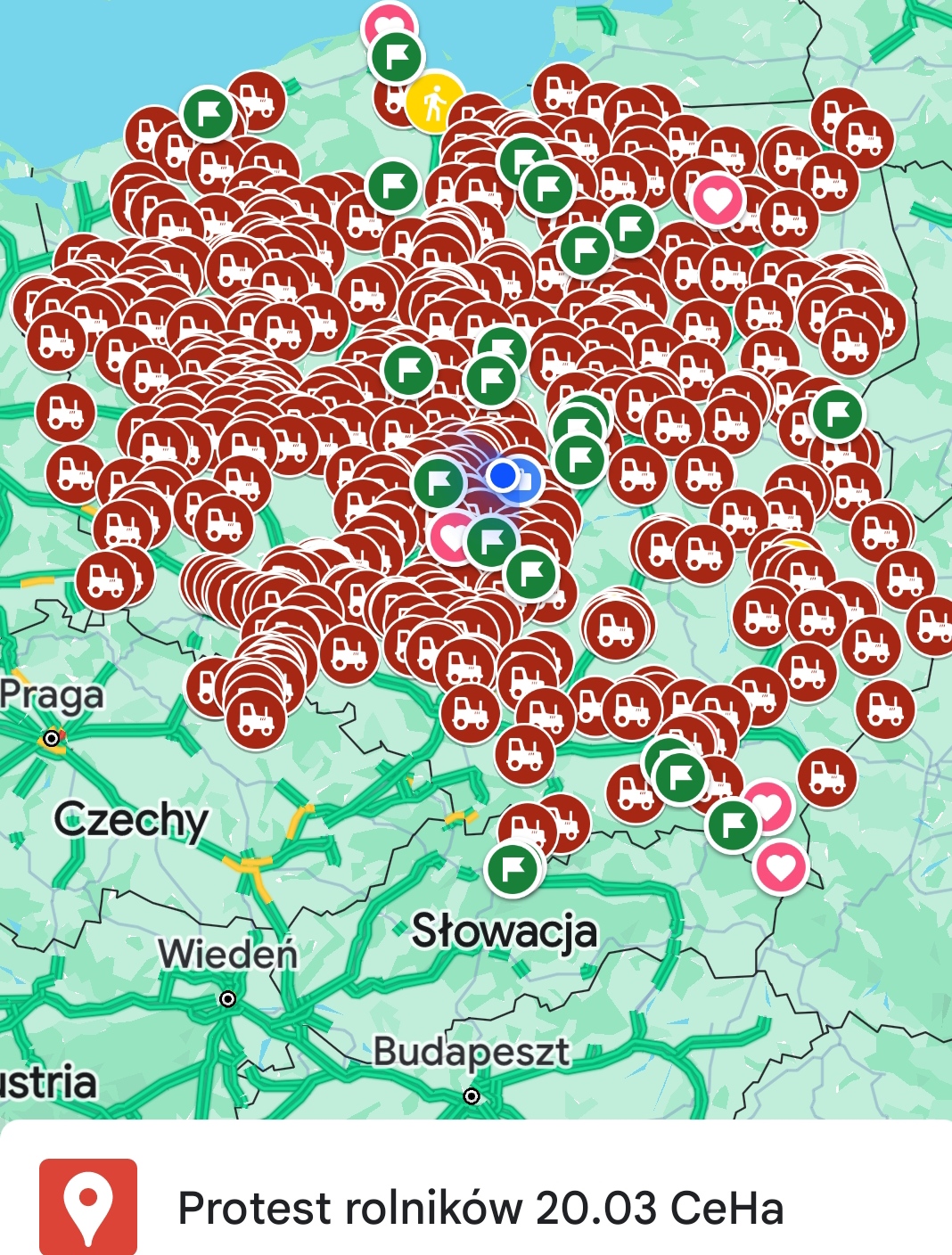 Na szczęście na autostradach nie protestują, u mnie do niej dojazd jest czysty według tej mapki i w Warszawie też nie mam nic na trasie. Fakt, jutro podobno ma być apogeum.
