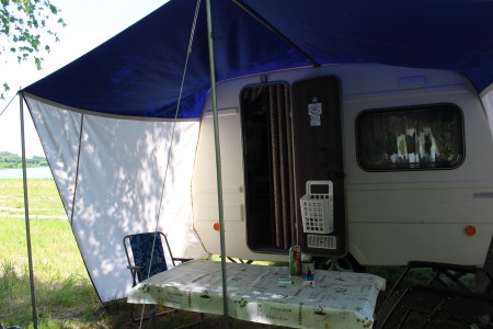 Podpatrzyłam rozwiązanie z namiotem tunelowym kolegi vvarriora. Mnie to przekonało: lekkość, szybki montaż i przylega fajnie do budki, od razy tworząc fartuch pod przyczepą, można rozłożyć cały, albo zwinąć część niezamykaną i ma się krótszy.