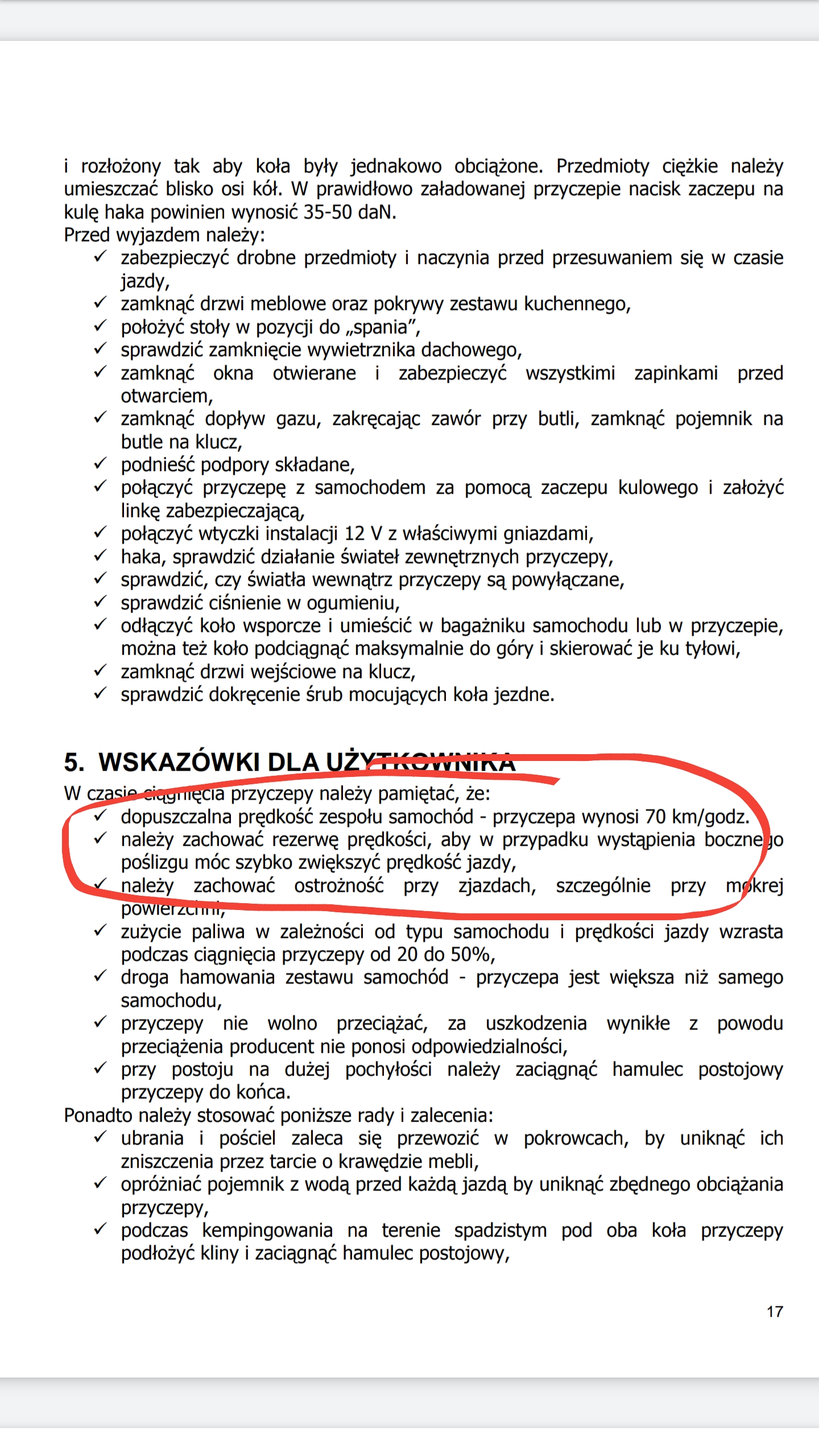 Owszem, w instrukcji jest napisane o przyśpieszeniu w celu wyrównania zestawu, ale przeczytać w niej można także o homologacji na maksymalną prędkość określoną wartością 70km/h.