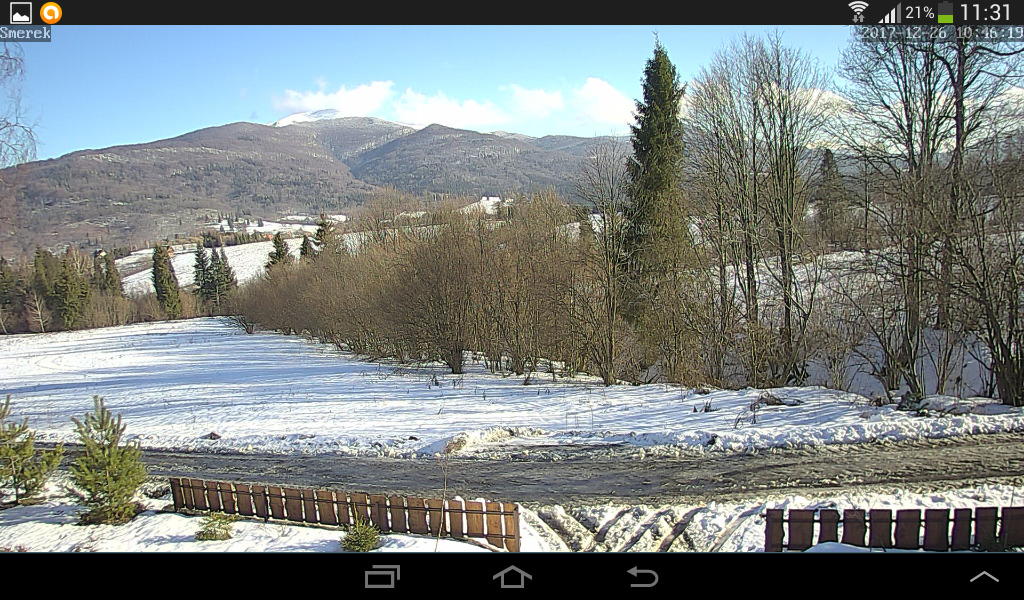 W jednym z domków koło "pasa startowego" z widokiem na górę Smerek (przy ładnej pogodzie naprawdę widać szczyty i prawie łączkę Bercika) jest aparat, który co kilka godzin wysyła zaktualizowany widok. Polecam jak coś: