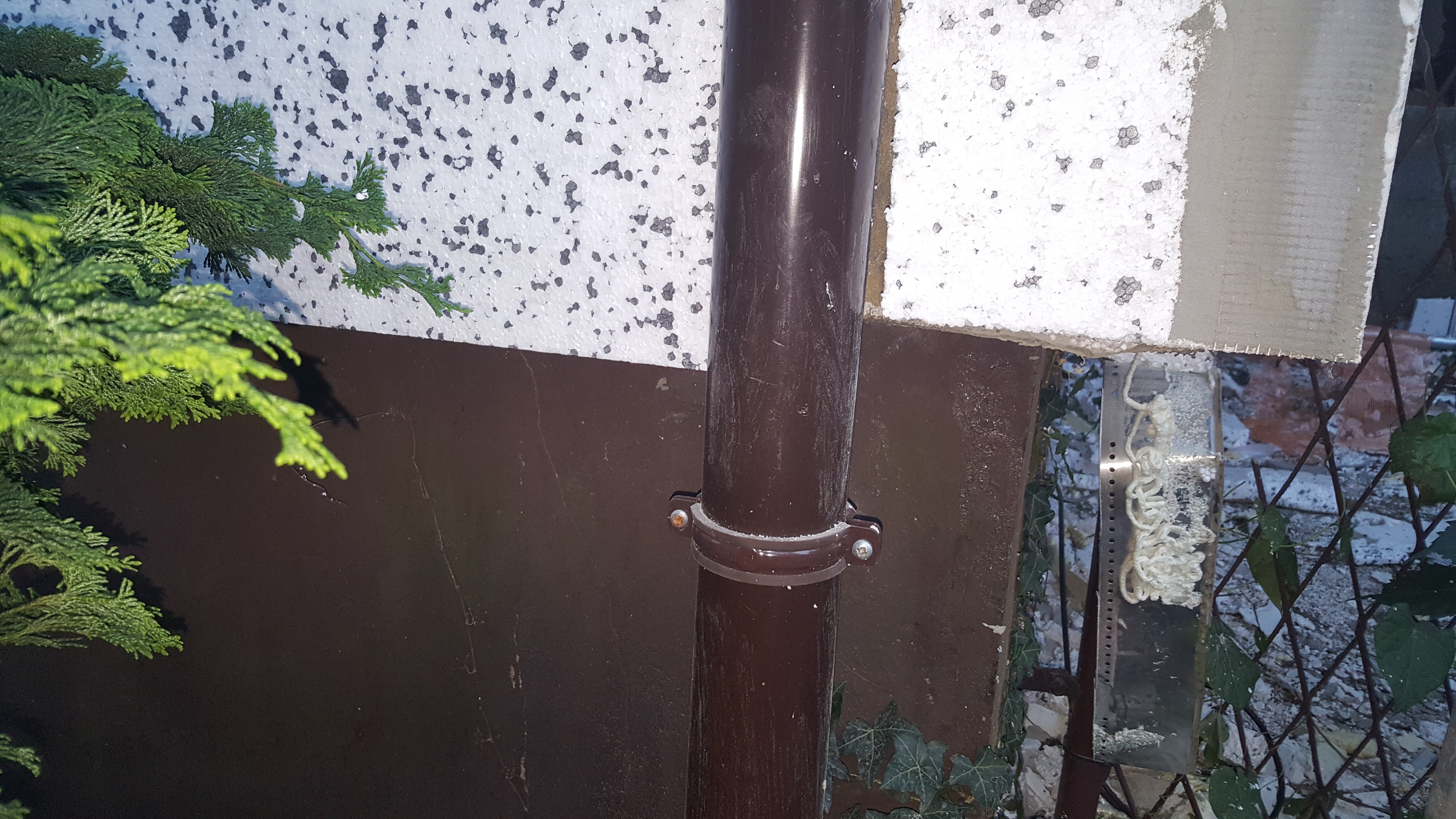 Jaka trzeba być umysłową amebą żeby takie coś wymyślić? Tracę wiarę w ludzi, spójrzcie na cokół przed i za rynną, przy drzwiach jest podobnie i na końcu ściany też się nie zgadza z tym co już jest na gotowo. Myślałem że to jakiś wkręt, szukałem kamer ale nie...