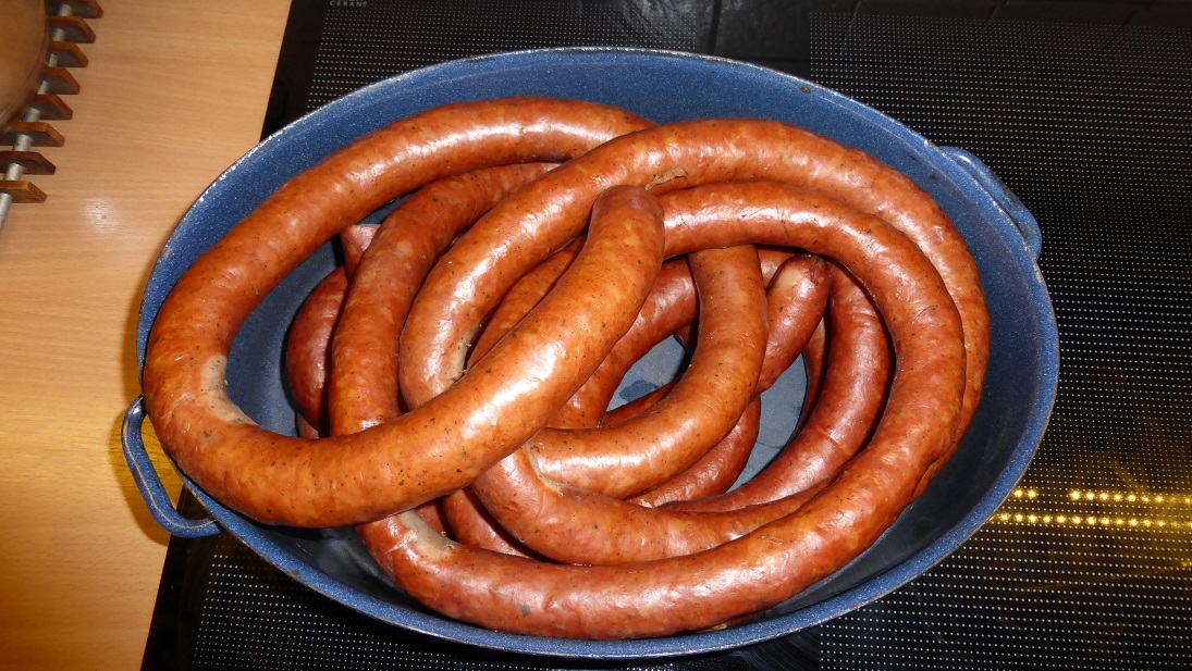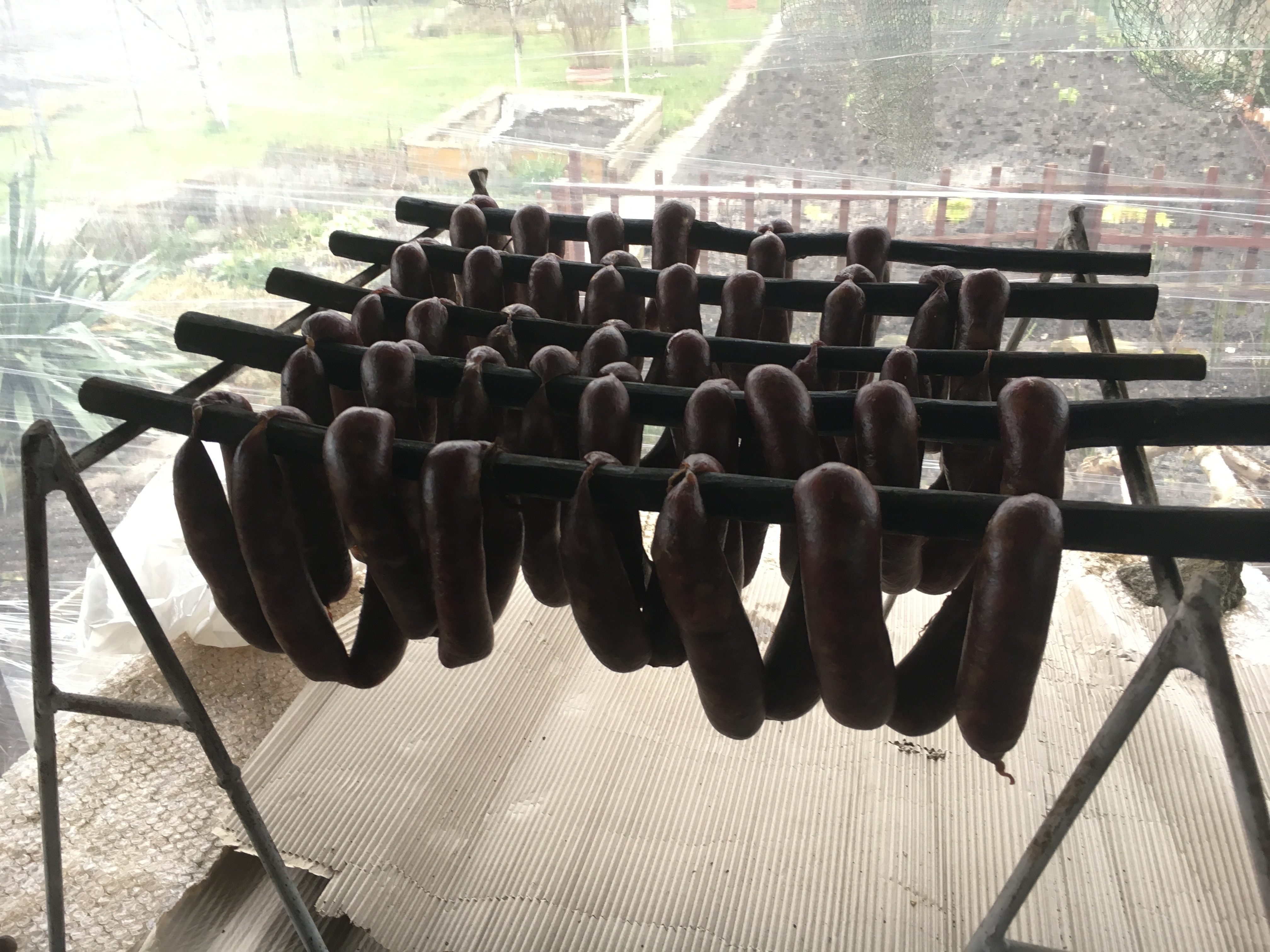 Dwa rodzaje kiełbachy, oba robione na soli z Ciechocinka, bez peklowania.