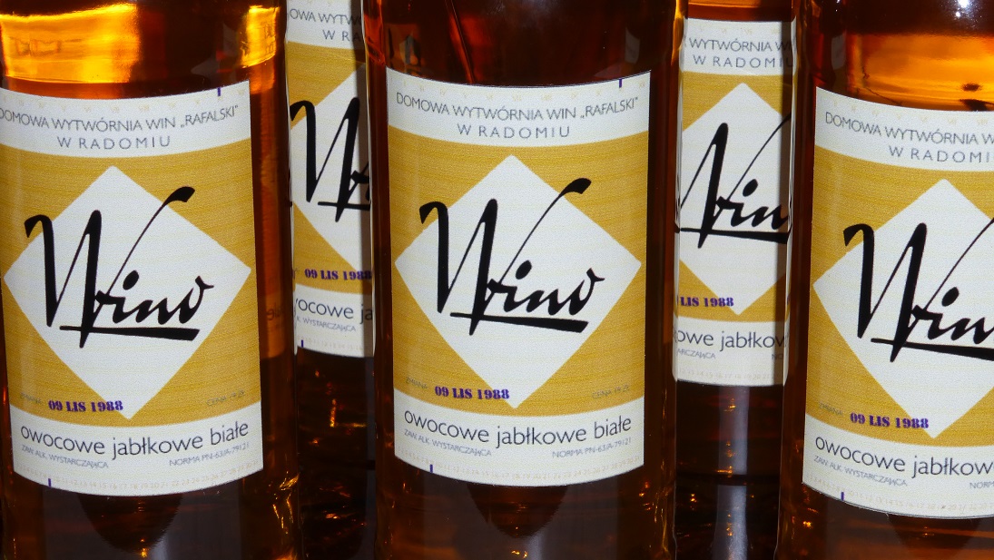 Jest też w butlach wino z soku tłoczonego z jabłek, tego co kupuje się w kartonach wewnątrz z workiem z kranikiem.