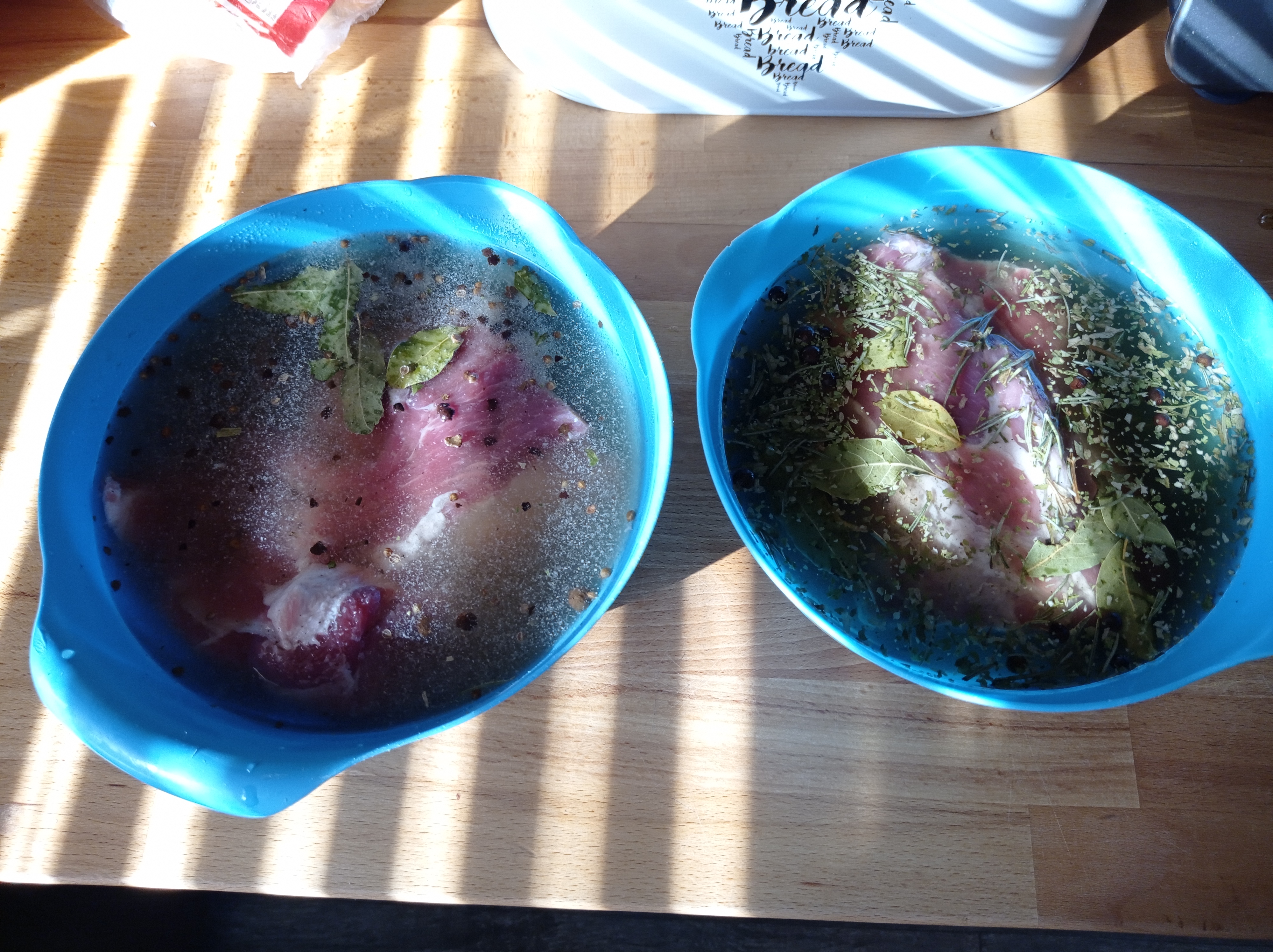 Właśnie pekluję 2 kg karkóweczki w dwóch rożnych marynatach. Towar szybko schodzi więc trza działać. Kiełby ze sklepu nie kupuję. W poniedziałek gotowanie.