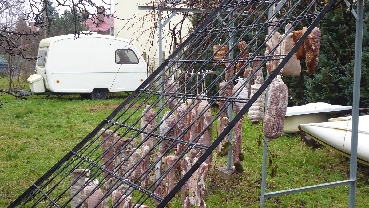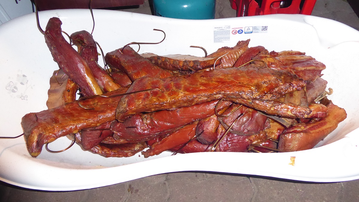 Towaru było sporo, to co na fotkach to nasz pierwszy wsad a wędziliśmy na dwie tury. W sobotę na nogach od siódmej rano do siódmej rano następnego dnia ale było warto. Piotruś, dzięki za super weekend i towarzystwo. Było ekstra jak zawsze