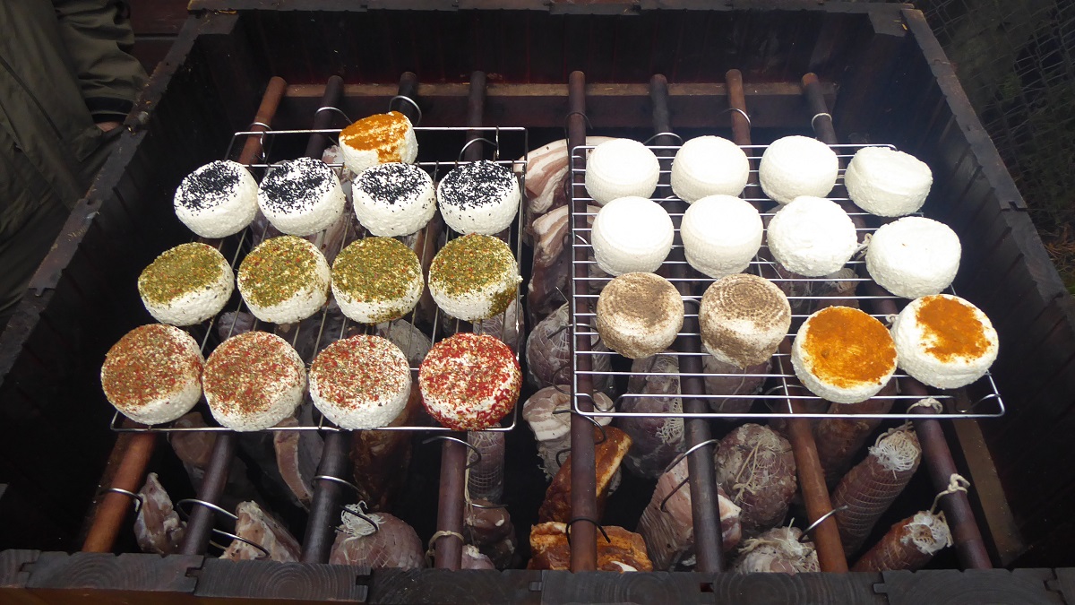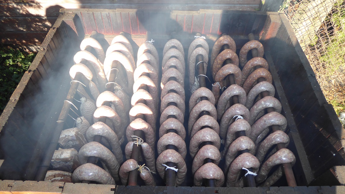 Cztery rodzaje z czego dwa robione "na oko" a poza tym kiełbasa sycylijska (wieprzowa, między innymi z papryką) i kiełbasa bydgoska (wieprzowo-drobiowa). Do tego przy okazji serki, jakieś mięsiwo i papryczki peperoni. Wędzenie dymem gorącym 4,5h a później część parzona a część podpiekana. Wyszło fajnie, zwłaszcza bydgoska mi smakuje.