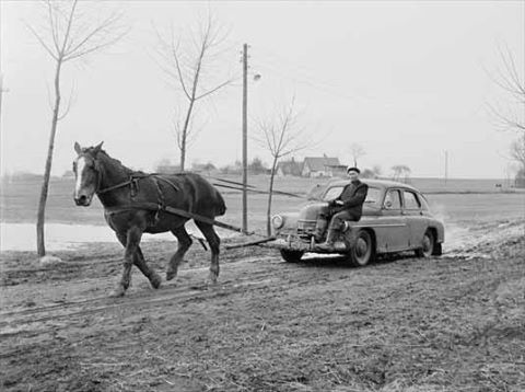 Coś tak jak tutaj. Koń nie raz pomagał tym mechanicznym w kłopocie