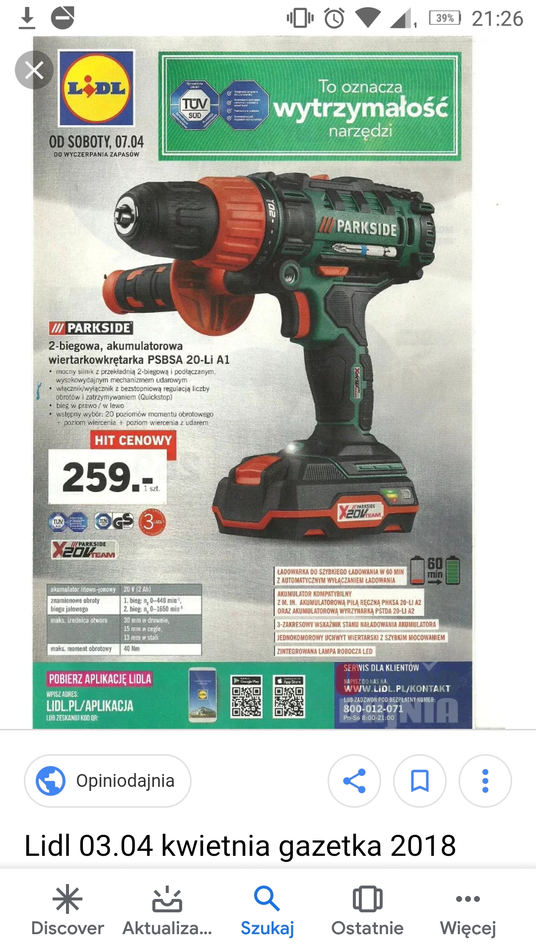 kooba pisze:Spróbuj załapać się na promocję w Lidlu. Parkside to na prawdę fajne i dobre sprzęty.