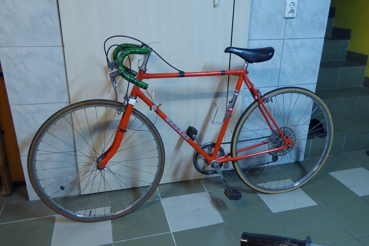 Historia jest taka, że pewien gość w '82 roku kupił nastoletnim córce i synowi po bicyklu. Rowery są do pary - te same opony, kolor, przerzutki, nawet naklejki na rurze podsiodłowej. Ponoć szybko je "usportowili" zdejmując bagażniki, błotniki, oświetlenie a Wagant dostał nową kierownicę, barana "na połykacza asfaltu" :lol: Córka używała roweru symbolicznie i miał szansę zachować się lepiej, lecz niestety (jeszcze w tamtych czasach) spadła na niego drabina uszkadzając tylną część ramy. Zostało to wyprostowane na ile się dało i wydaje się, że koło prowadzone jest w miarę dobrze, choć uszkodzenie wygląda słabo. Wagant jeździł więcej ale też nie jakoś specjalnie dużo, co widać po oponach. W latach 90-tych dostał to brzydkie siodło i jaskrawą owijkę kierownicy.