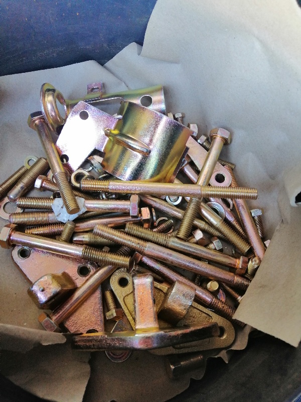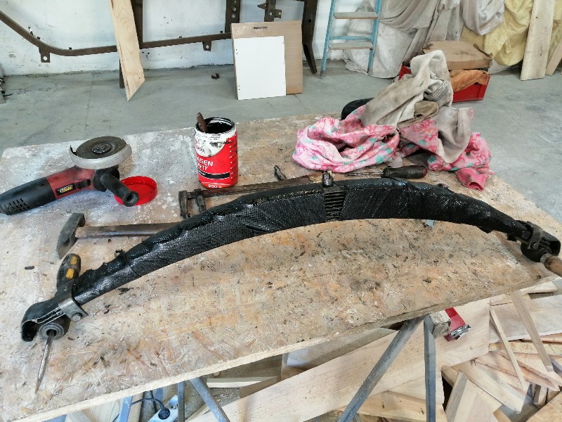 Drugi resor zrobiony, szczęki hamulcowe rozebrałem, wytrawiłem w kwasie i oddałem do ocynkowania (żółta pasywacja), potem Marcin podrzucił mi je do firmy gdzie zakuwają nowe okładziny. Kolejny kroczek do przodu.