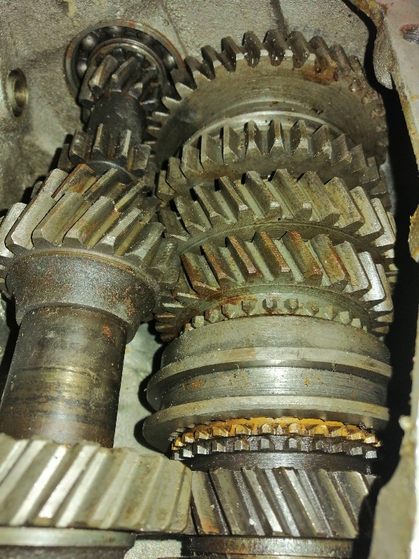 No dobra a teraz o tym uśmiechu losu, chciałem sprawdzić w jakiej kondycji jest skrzynia biegów, otworzyłem dekiel wodzików i po prostu ręce mi opadły, luzy na pierwszym biegu takie jak kijem w wiadrze, wkur... em się bo zaś cza szukać innej. Wróciłem do domu myśląc o tej skrzyni, nagle mnie olśniło, że przecież dwa lata temu przywoziłem całe auto gratów od kolegi mojego taty i tam była jakaś skrzynia którą wrzuciłem na warsztat. Wczoraj wyciągam ją na stół aby sprawdzić jej stan, odkręcam śruby dekla i jakoś tak patrzę czemu ta skrzynia jest taka czysta (tamta upierniczona olejem, brudem, itp.) Łożyska półosi jakoś widać czyste, ale dobra rozbieram dalej. Otwieram dekiel, zero oleju a tryby jakby nowe