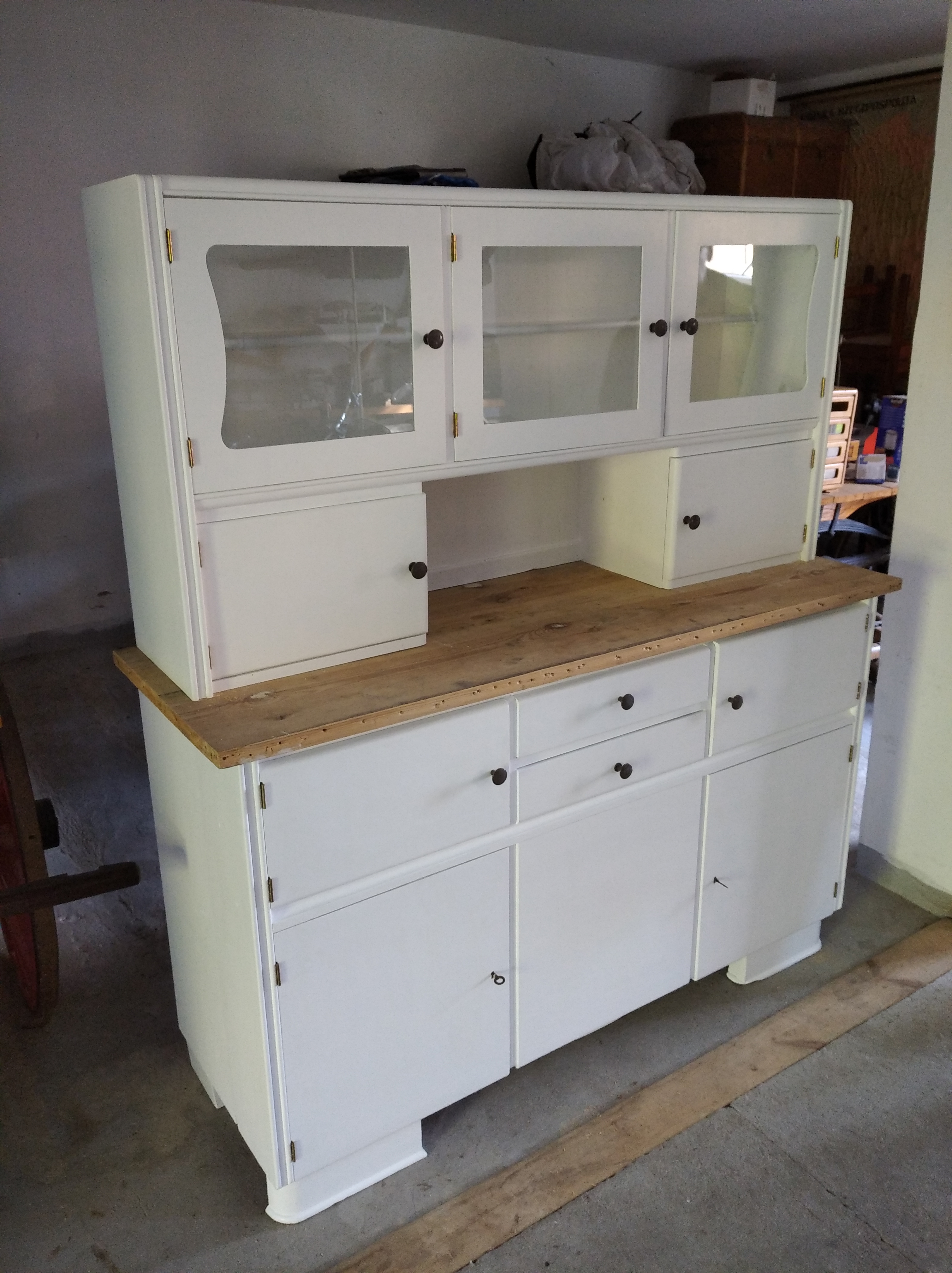 Dojdzie jeszcze cerata na blat ale oryginalny z litego drzewa jest piękny... Może kiedyś trafi do domu jako ozdoba, póki co będzie przykryty ceratą i dookoła opaska z listew drewnianych tak, jak to wyglądało kiedyś. Na razie zasila ekspozycję mojego muzeum.