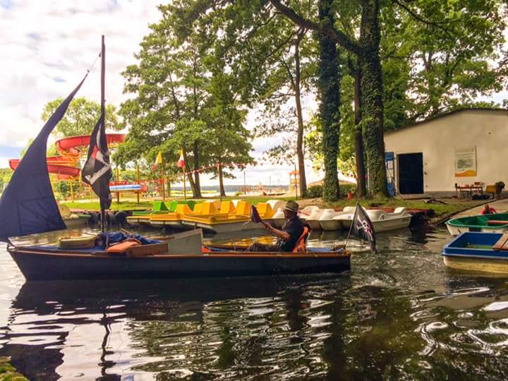 Choć na zlot przybyło mnóstwo pięknych starych pojazdów to i nasze składane kajaki z żaglami oraz spalinowe silniki do nich wzbudzały spore zainteresowanie.