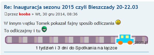 kooba pisze:My startujemy we czwartek około 22, ale planujemy jakiś nocleg po drodze. Dojedziemy na łączkę w piątek około południa.