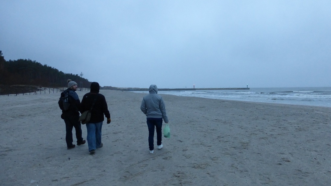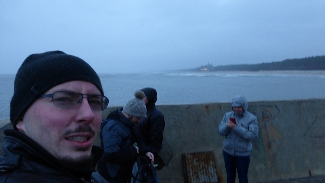 W międzyczasie wiatr przybierał na sile a deszcz się wzmagał. Uraczeni Stacha winkiem i nie tylko, we dwóch wybraliśmy się nad morze, zobaczyć czy się rozbujało.