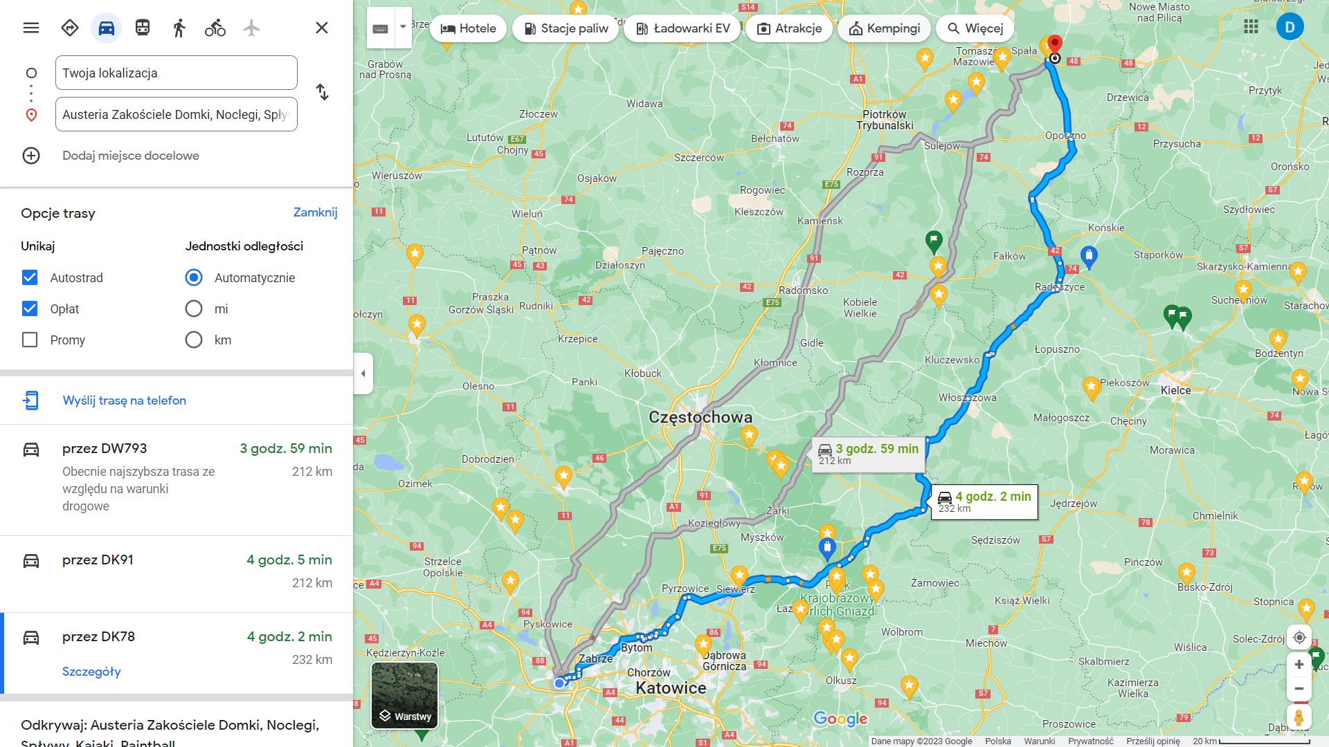 W sumie to fakt, monotonia autostrady wykańcza. Jak czas nie goni to też lubię ominąć. Z tych trzech tras co pokazałeś ja lubię przez Żarki, Złoty Potok jeździć