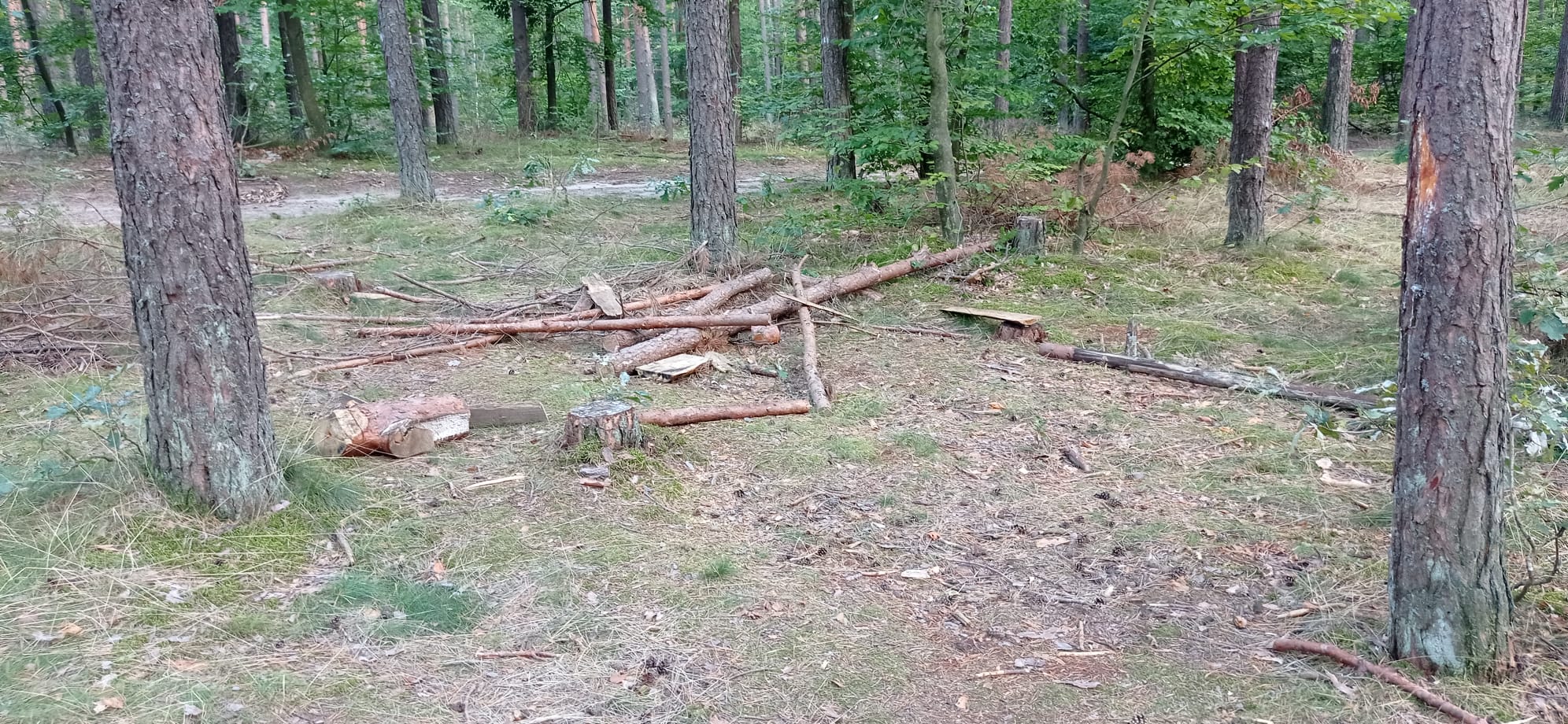Na obrzeżach "naszego" lasu leży trochę drewna na ognisko, które pozostało po sprzątaniu wiatrołomów z wiosny i obozie. Mam nadzieję, że nikt nam tego nie posprząta do końca września.