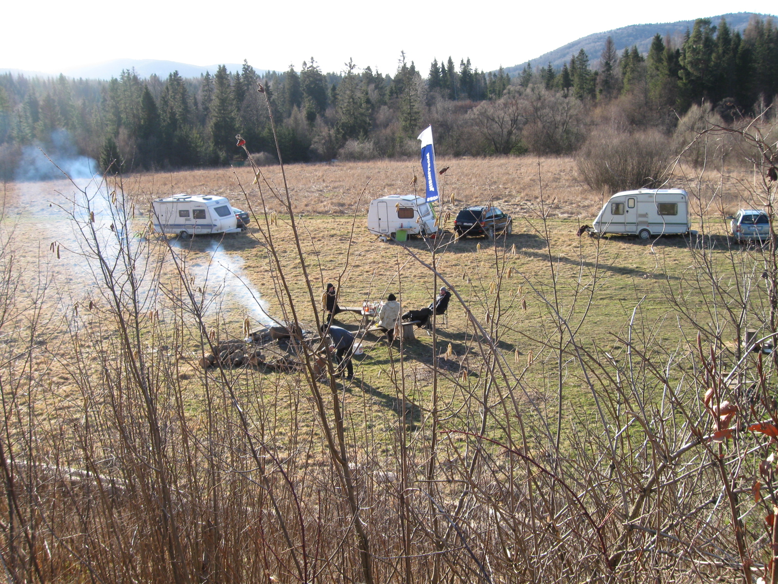 Zaczęliśmy od dwóch załóg, które dotarły na miejsce w czwartek koło północy. Jednak nie musieliśmy długo czekać, a na mostku pojawił się Jarek, który jednak potrzebował pomocy w dotarciu na miejsce i ostatecznie również w ustawieniu przyczepy.
