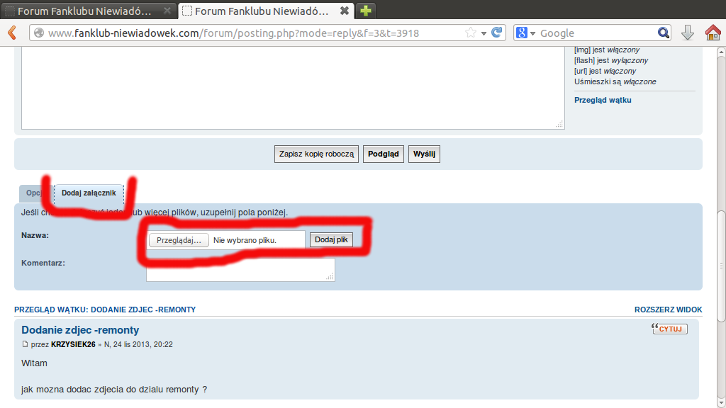 Kolego dział jest mało ważny. Jak chcesz wrzucić fotkę to klikasz pod ostatnim postem "Odpowiedz" i ukaże Ci się taki ekran