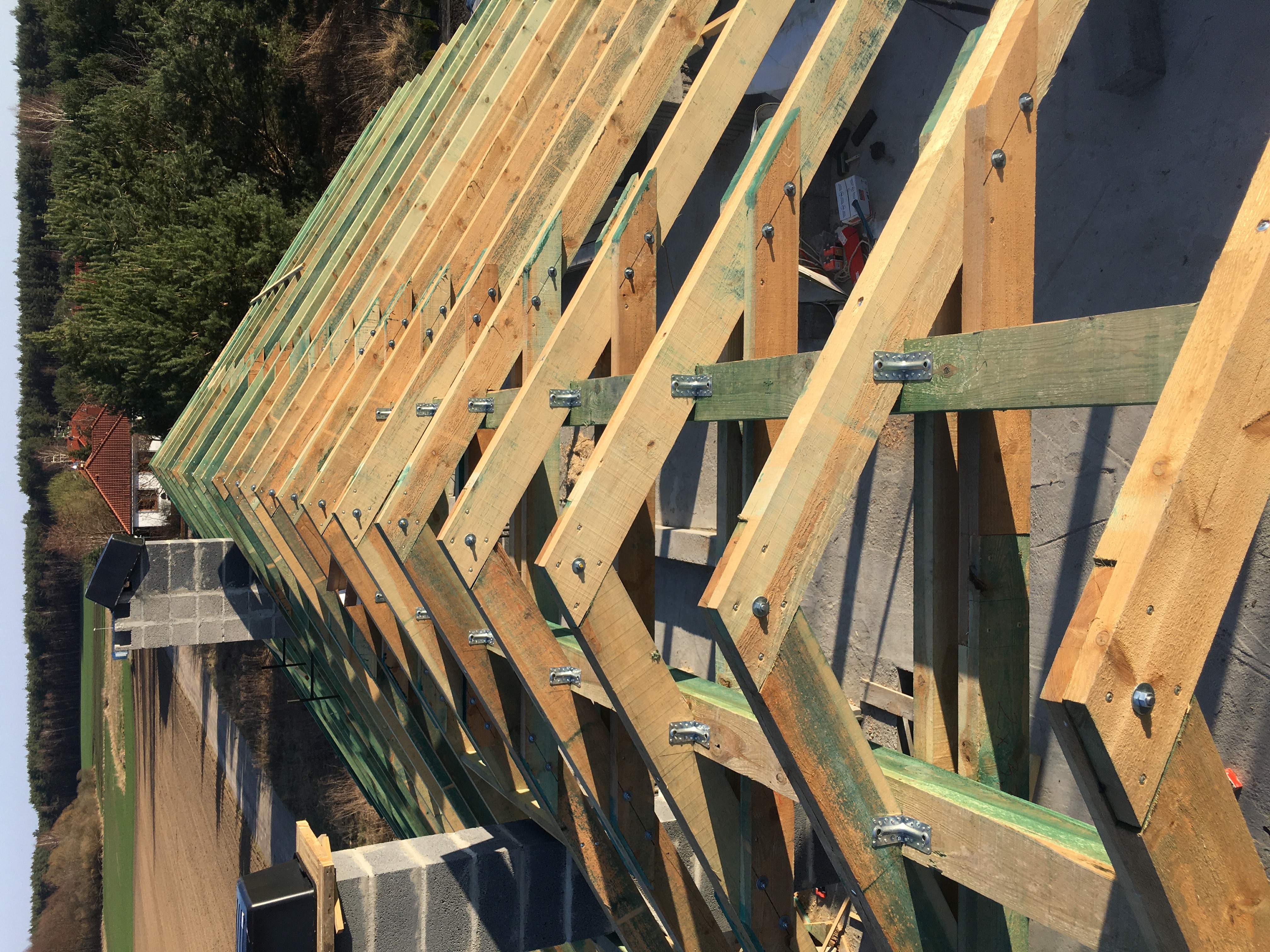 Tak dwie płatwie idą przez całą długość dachu, są tylko podparciem dla dwóch par krokwi wystających i pełnią funkcje usztywniającą konstrukcje. Szczerze przy pełnym deskowaniu mogłoby ich nie być ale projekt przewidywał więc je wstawiłem. Budowa dachu była dla mnie największym i najfajniejszym wyzwaniem jakie do tej pory miałem okazję podjąć