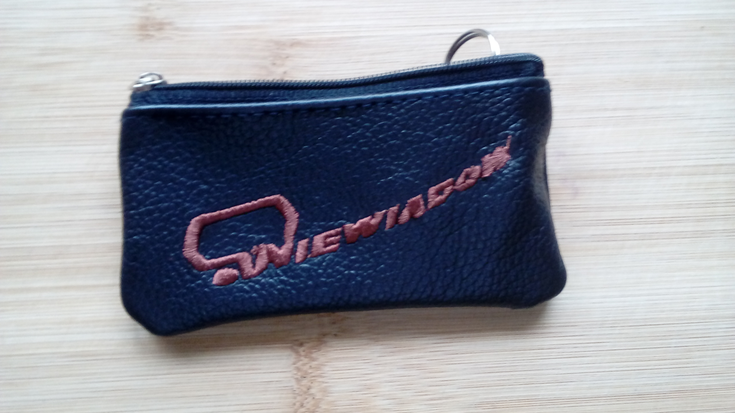 Kolor czarny, napis wyszywany w kolorze brązu, w środku oczko na klucze, zamek spoko, całe ze skóry. Jakiej skóry, to nie wiem