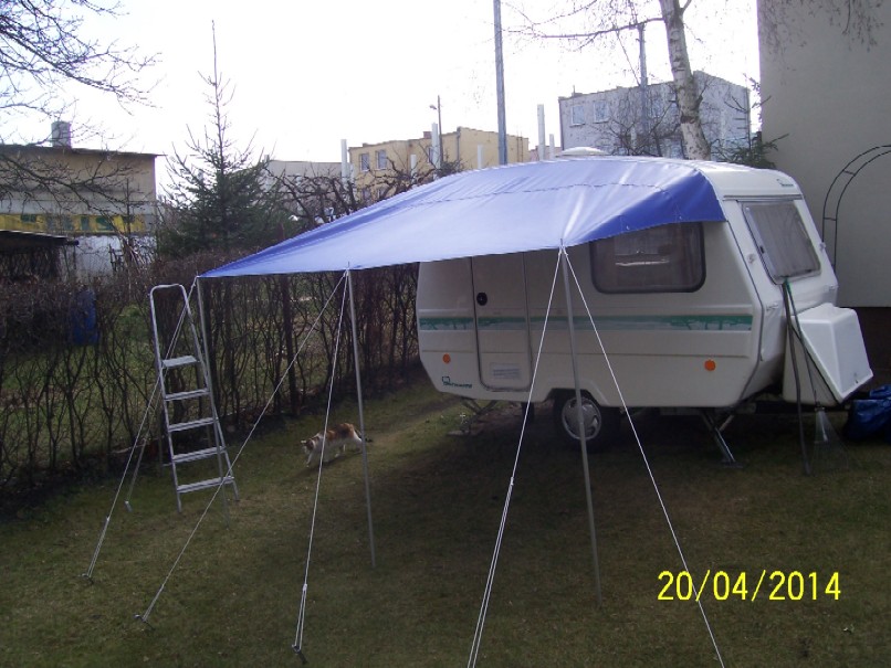 Nil nie daj się prosić o zwymiarowanie daszka ewentualnie kto i za ile go stworzył. Daszek mistrzostwo świata i okolic! Na przelotach rozstawianie przedsionka jest bez sensu a to jest alternatywa. Wysłałem zapytania w środę za ile podobne cuda robią i czekam na odpowiedzi.