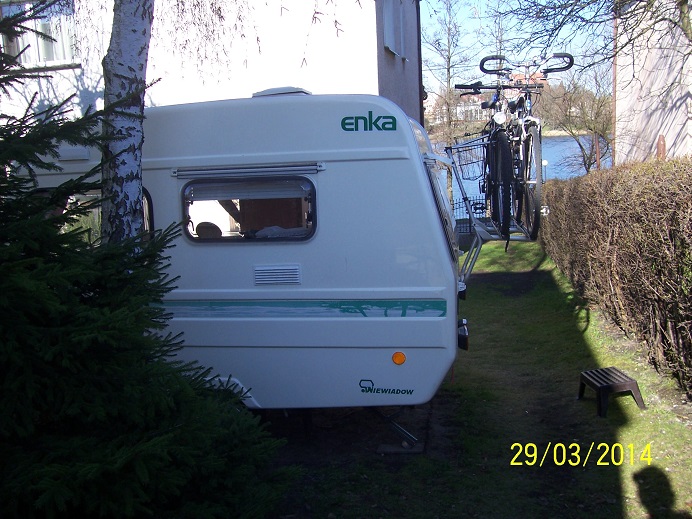 Super wykombinowałeś z tymi wykręcanymi nóżkami , konstrukcja stabilna i nie zajmuje miejsca w transporcie ale moja skromna uwaga dołóż jeszcze jedną śrubę to nie będzie podrygiwać do góry przy podmuchach i będziesz mógł docisnąć przyczepą do gleby.