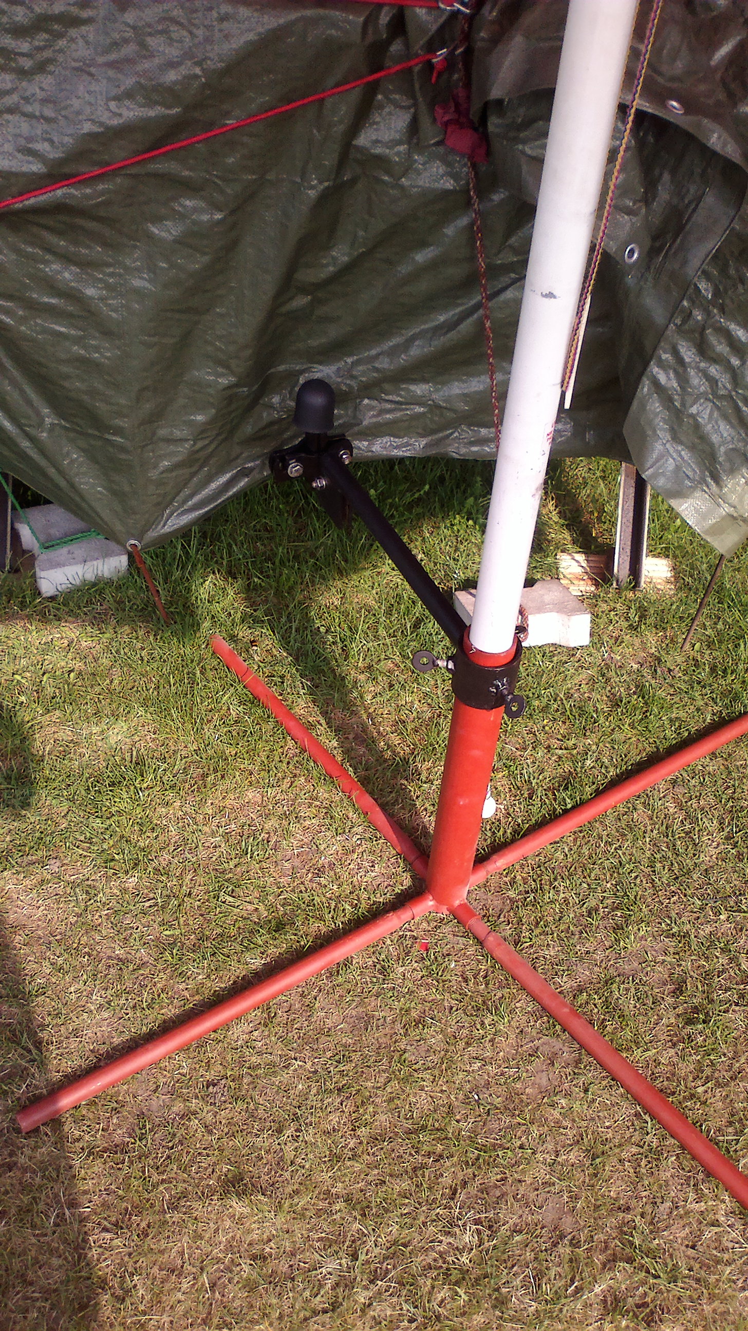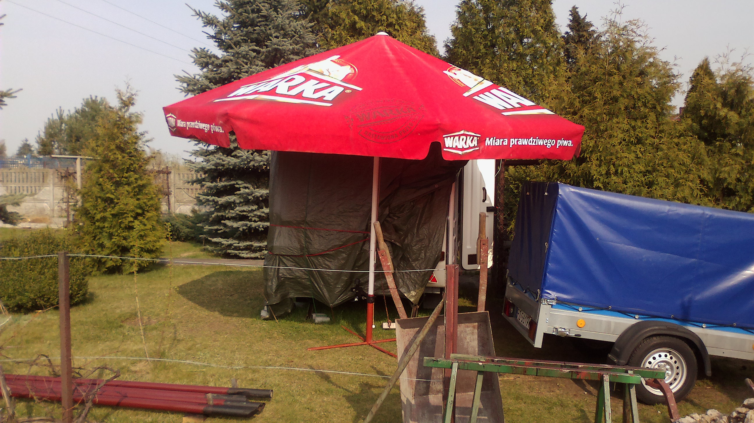 Rura od parasola jest grubsza ma 10 cm średnicy .Miałem go już na wietrze i wytrzymał .A mocowanie chyba zrobię do haka od cepki i dodatkowo stojak ten który mam lub taki świder jak napisałeś , wtedy będzie blisko drzwi wejsciowych i w razie deszczu będzie robił za daszek .