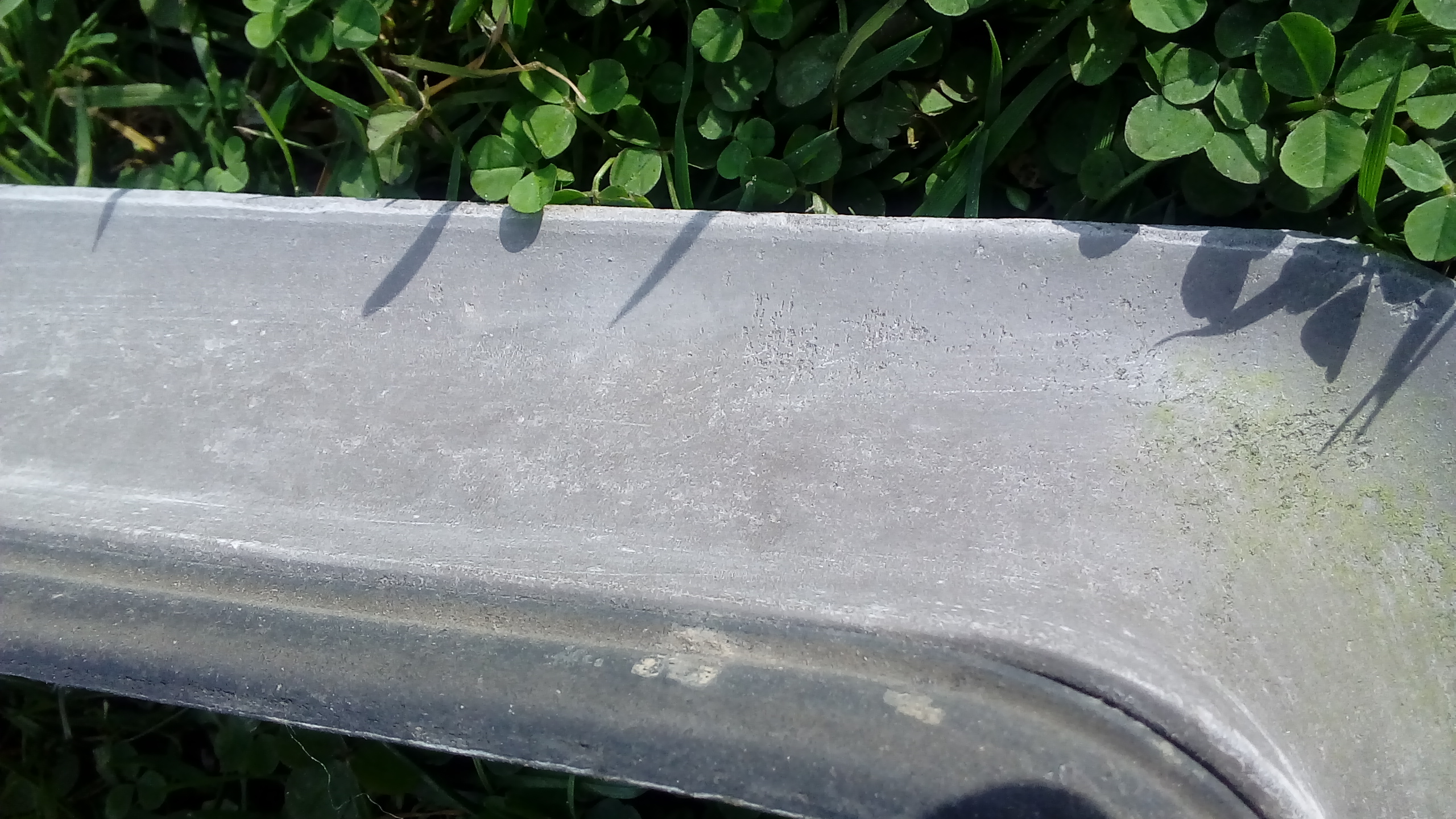 Milimetrowy nalot spalonego od słońca plastiku i szorowanie wełną stalową, do uzyskania twardej powierzchni. Potem podkład do plastiku i lakier strukturalny szary ( jak wszystko w tej budzie )