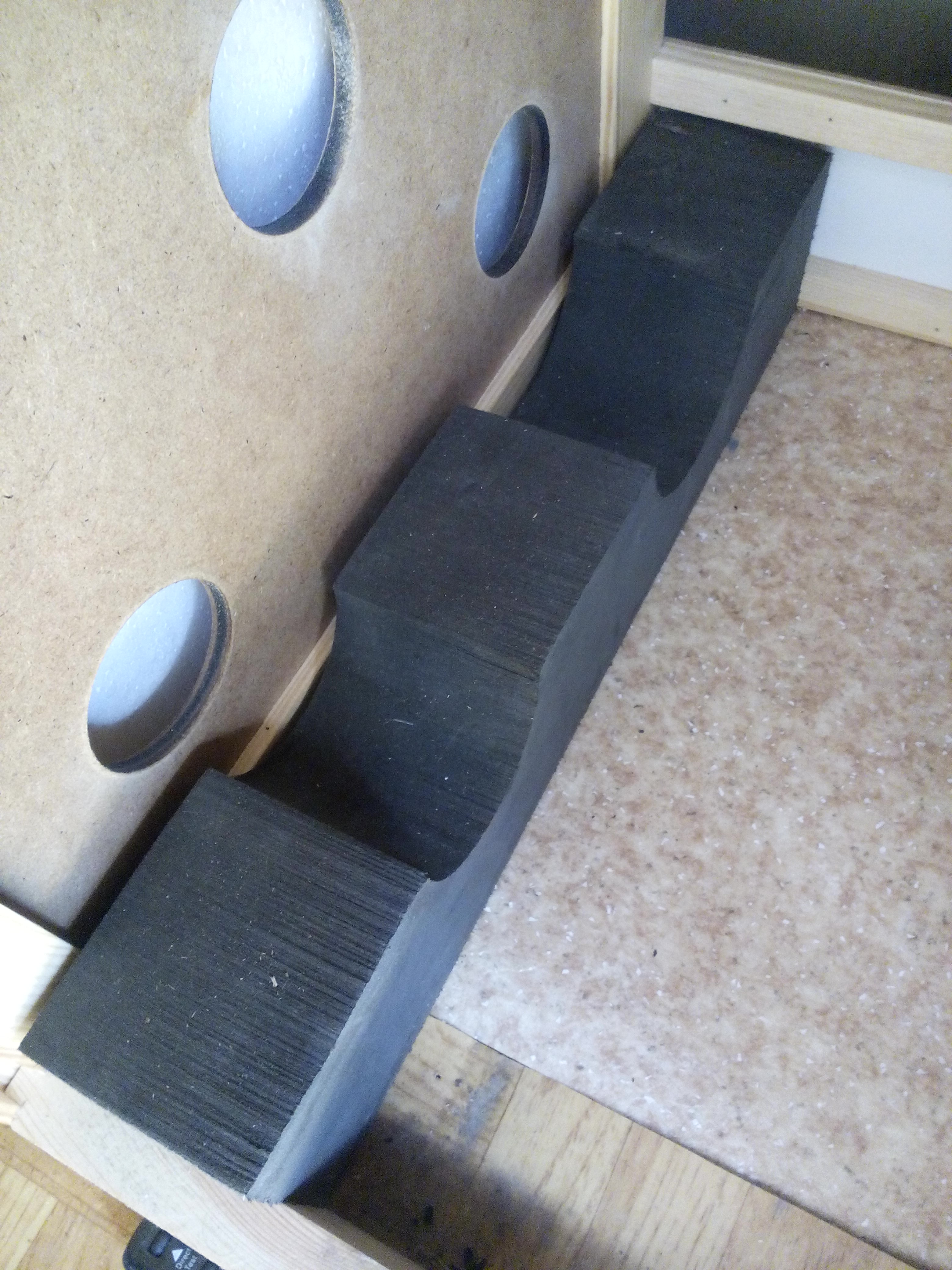 Mocowanie wykonałem ze sklejki wodoodpornej. Kawałki sklejki pociąłem na kilka listewek i wyfrezowałem w nich podłużne otwory do przeprowadzania