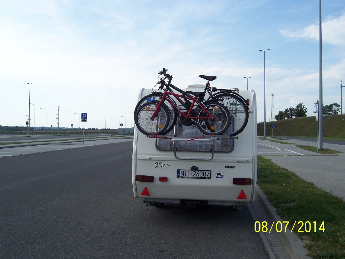 wożę rowery na dachu ale myślę nad przełożeniem nad kufer. Tyl przyczepy odpada jest lodówka zlew woda i przedsionek jak z tylu wyląduje to na haku mi przyczepę podbija
