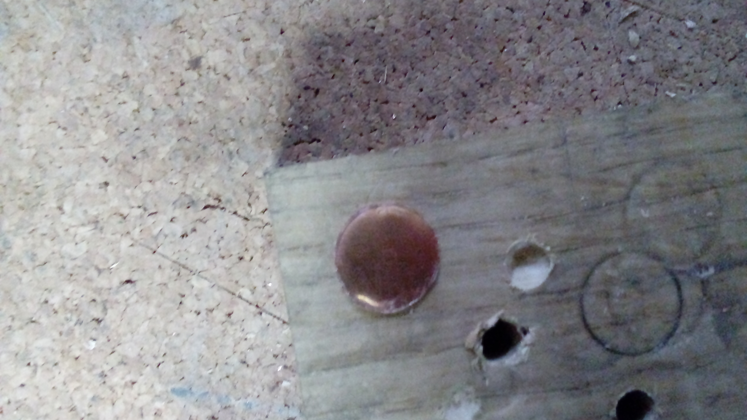 Następnie zaznaczyłem środek w wyciętej blaszce i dremelem wypiłowałem otwór fi 5 mm dokładnie w środku ( wiercenie odpada, gdyż powygina nam blaszkę w miejscu wiercenia i otwór wyjdzie nam cały poszarpany )