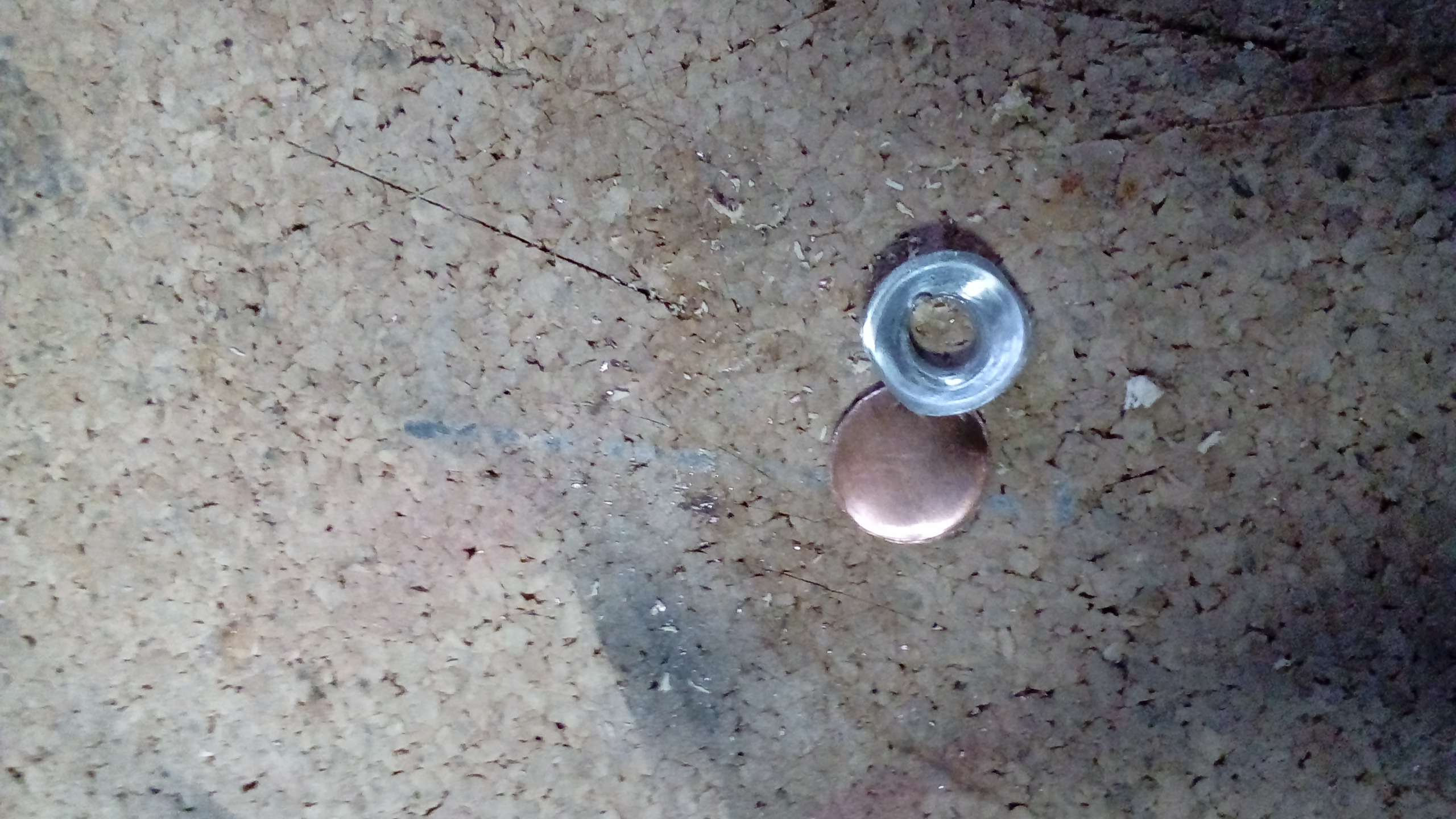 Wybijakiem do otworów 12 mm wybiłem w blaszce znak, co spowodowało, że blaszka w miejscu zaznaczenia wybrzuszyła się jedną stroną i o to właśnie chodziło ( przybrała kształt wypukłego kola i będzie już przybliżony kształt końcówki zaworu jak trzeba)