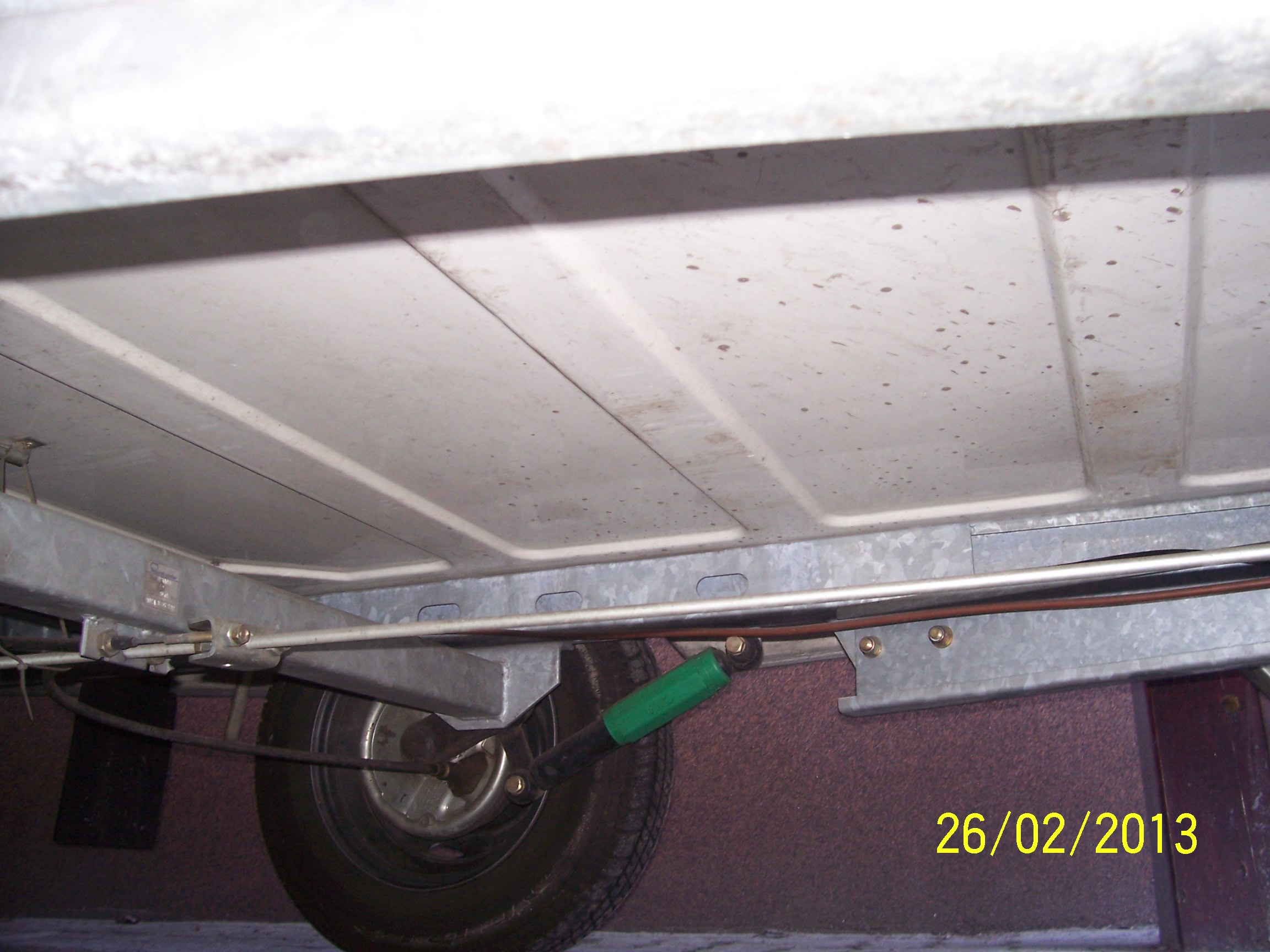 Podobają mi się lampki oświetlenia wnętrza z tym przełącznikiem z boku, zlew i kuchenka, no i fajnie podpory są zamocowane pod kątem, na pewno przyczepa stabilniej stoi na nich. Amortyzatory też oryginalne fabryczne. Nil zamieniłbym się na nią :D