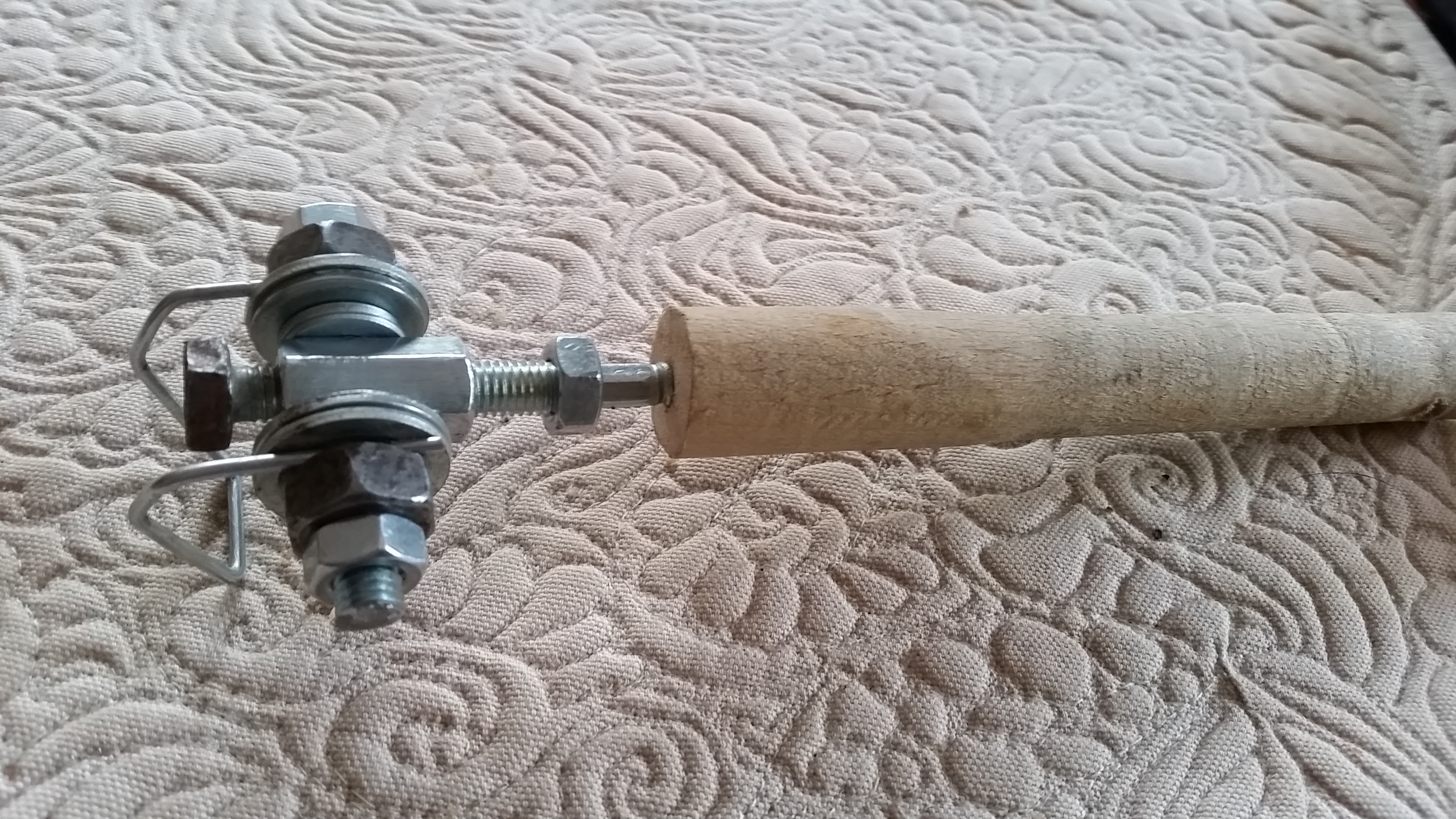 Temat przerabiany wielokrotnie. Pomyślałem, że moje rozwiąznie może się komuś przydać. Zastosowane materiały to: 1 śruba M8, 2 nakrętki M8, 2 nakrętki M10, podkładki fi 8, drut z wieszaka. Nie miałem dostępu do spawarki. Zastosowałem taką "śrubowo nakrętkową wariację". W tym rozwiązaniu istnieje możliwość dopasowania szerokości przyrządu do uszczelek przez dobranie podkładek. Rączka zamocowana jest do śruby z jednej strony wkręconej do wydłużonej nakrędki M8 a z drugiej do kawałka kia do szczotki.