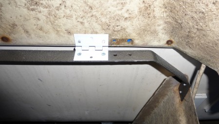 Zrobiłem też bardzo prostą podpórkę klapy, sprawdziła się w 127 więc i tu zrobi robotę. Jest to docięty z długości pręt do podwieszania sufitów zakończony oczkiem. W ściance kufra jest śruba która przechodzi przez oko na końcu drutu dając zawias. Żeby drut nie spadł na końcu śruby nakręcona jest nakrętka z kontrą.