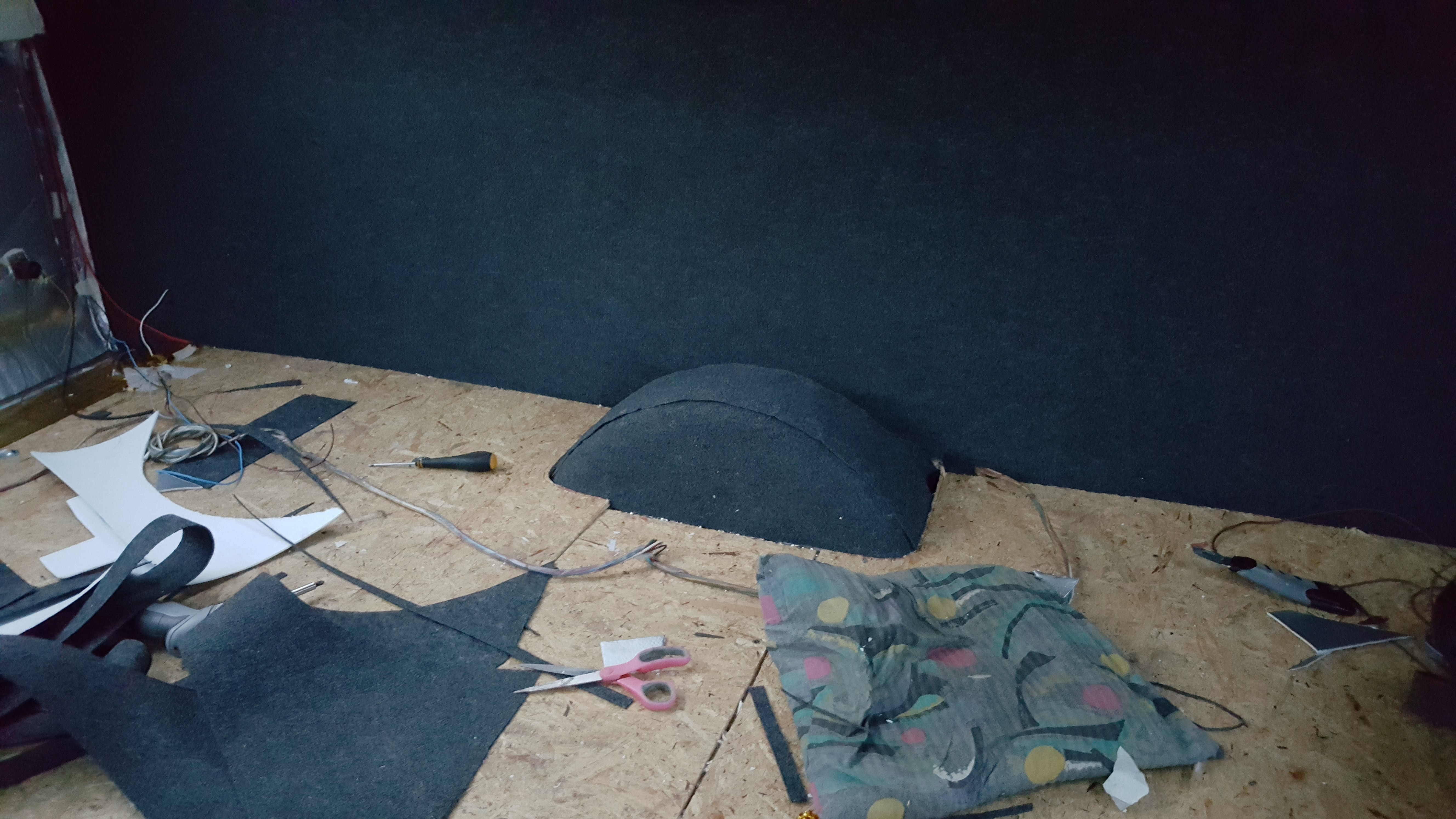 Dziś znów do przodu, szpachlowanie otworów w oryginalnych górnych półkach ponieważ będą wykorzystane. Pójdą do nich nowe w zamki, i pełno było różnych dziur po wieszakach i innych pierdołach. Dziś znów działałem sam, w dodatku po pracy więc nie było za dużo czasu. Pobawiłem się z nadkolami, przyczepa już prawie oklejona wykladziną. Jeszcze jeden dzień pracy, przy wykańczaniu, podklejaniu brzegów itp i będzie wreszcie gotowe.