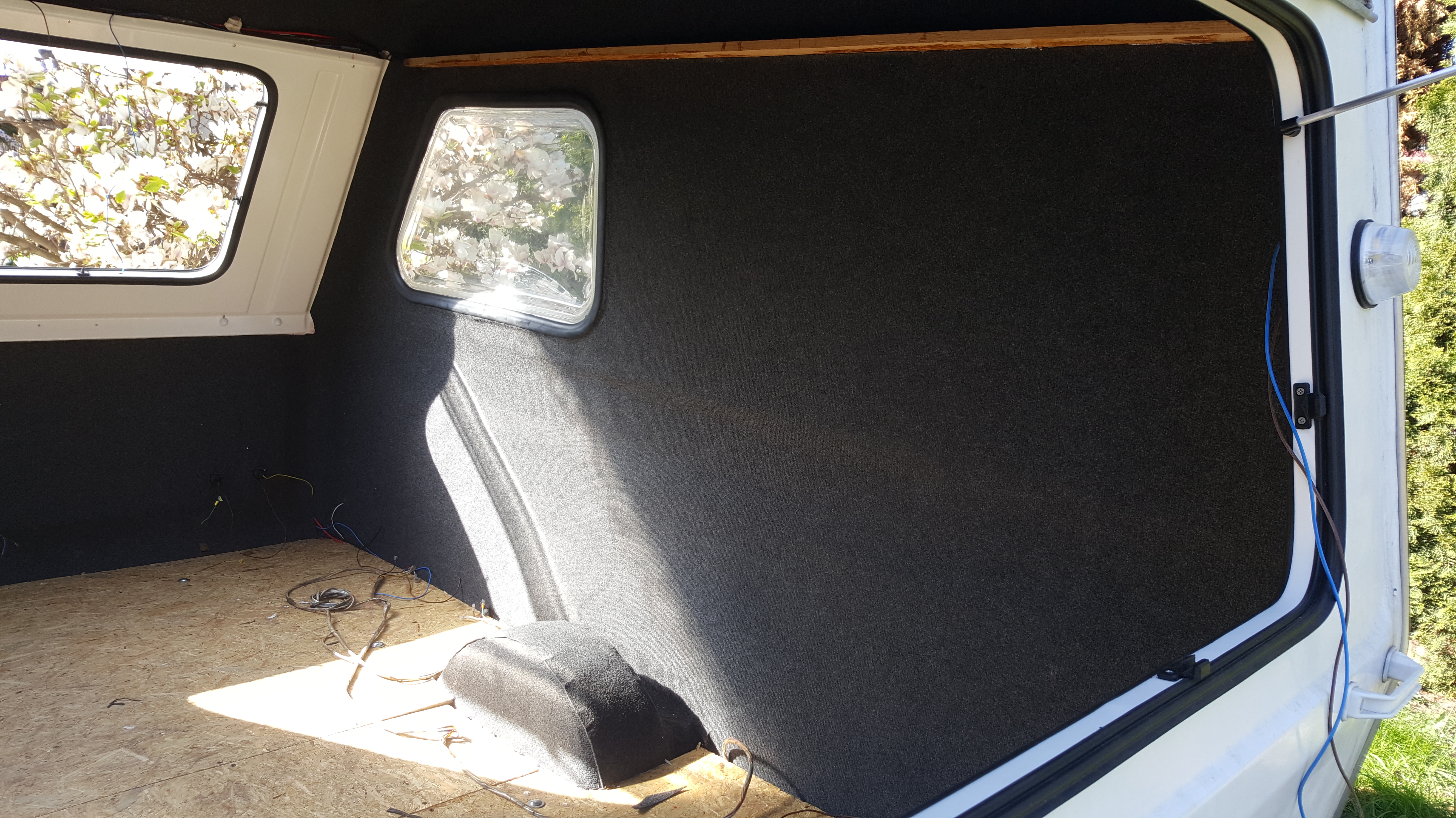W końcu aż miło wejść do przyczepy, miło popatrzeć na efekty pracy, wyszło bardzo dobrze wg mojej oceny. Wykładzina to zdecydowanie jest wdzięczny materiał, porównując do ekranu to jak niebo i ziemia.