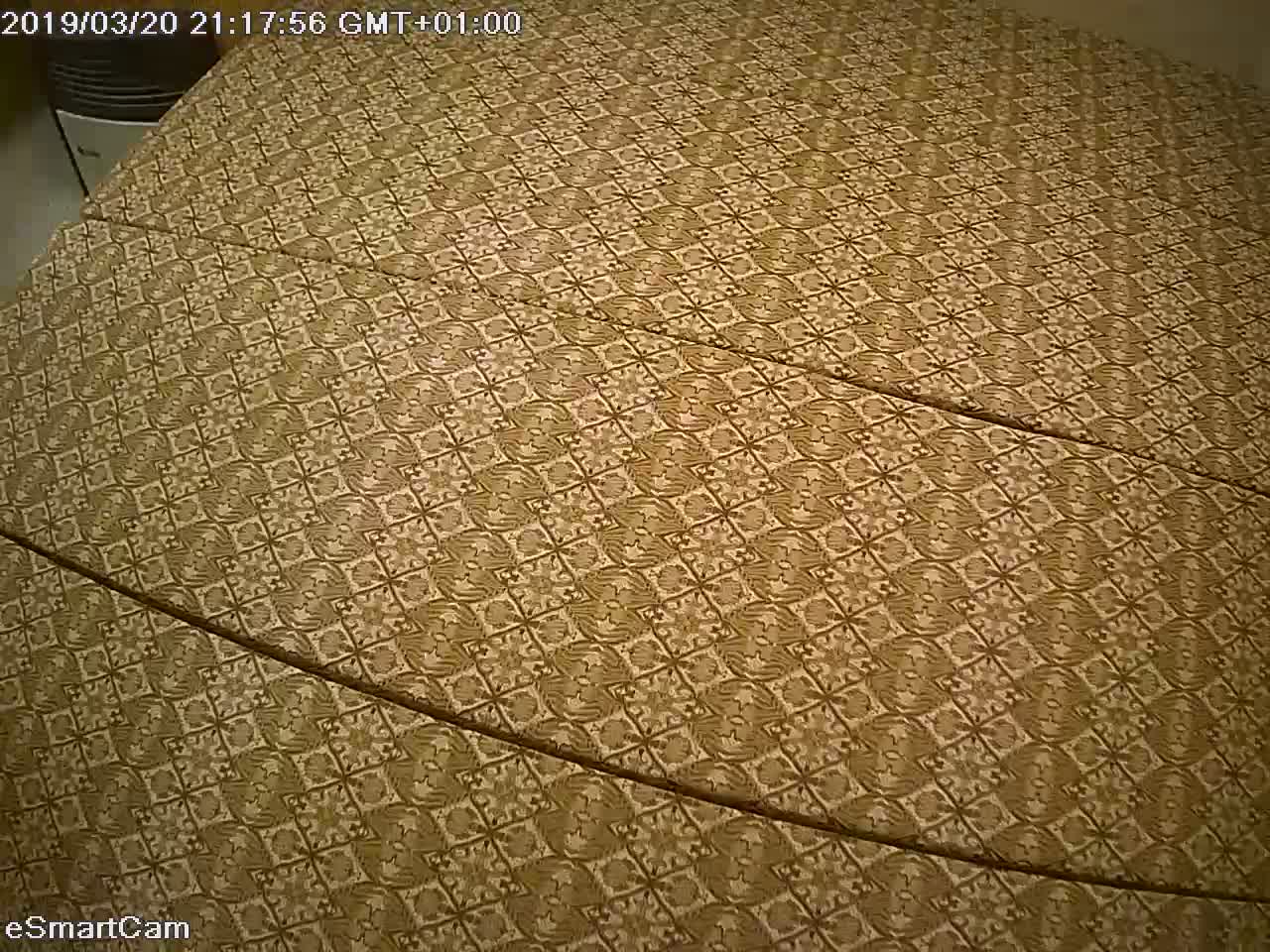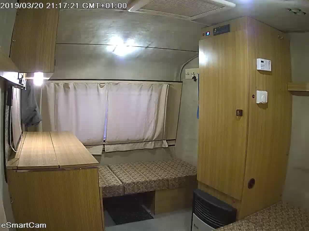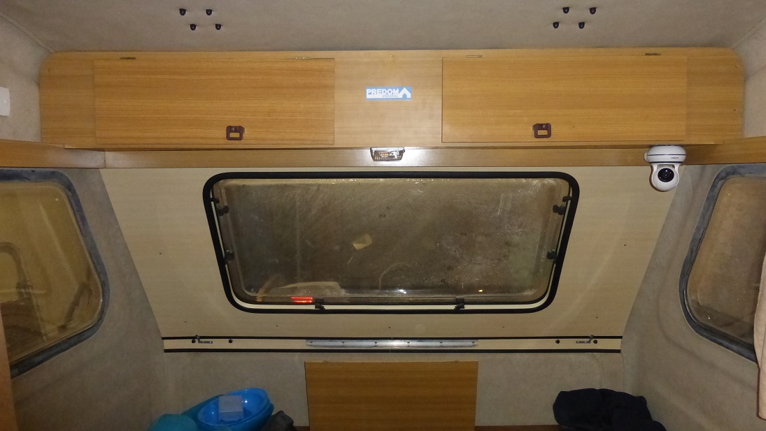 Kamerkę zamontowałem w pozycji wiszącej pod tylną półką, po stronie kuchni czyli po przekątnej do drzwi wejściowych.
