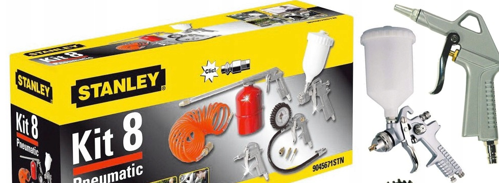 Najbardziej się boję tego klejenia tapicerki. Na czas obecny mam w myśli użyć kleju Bonatap tylko ,że on jest na pistolet którego się boję.Z drugiej strony przeraża mnie smarowanie wszystkiego pędzlem. Ojciec ma kompresor i taki zestaw Stanleya. Nie wiem jaka tam jest dysza. Myślicie ,że taki pistolet z zestawu da radę