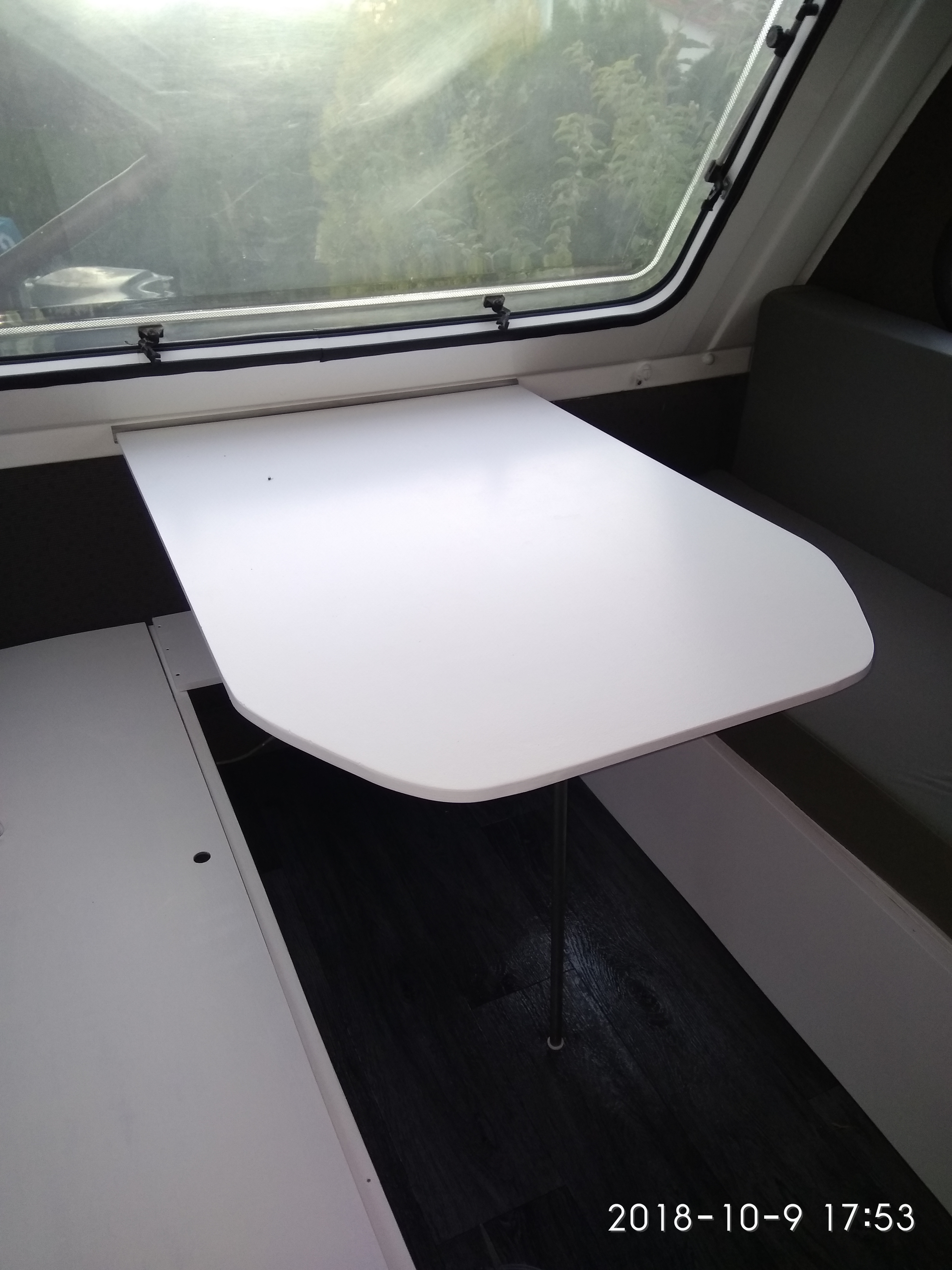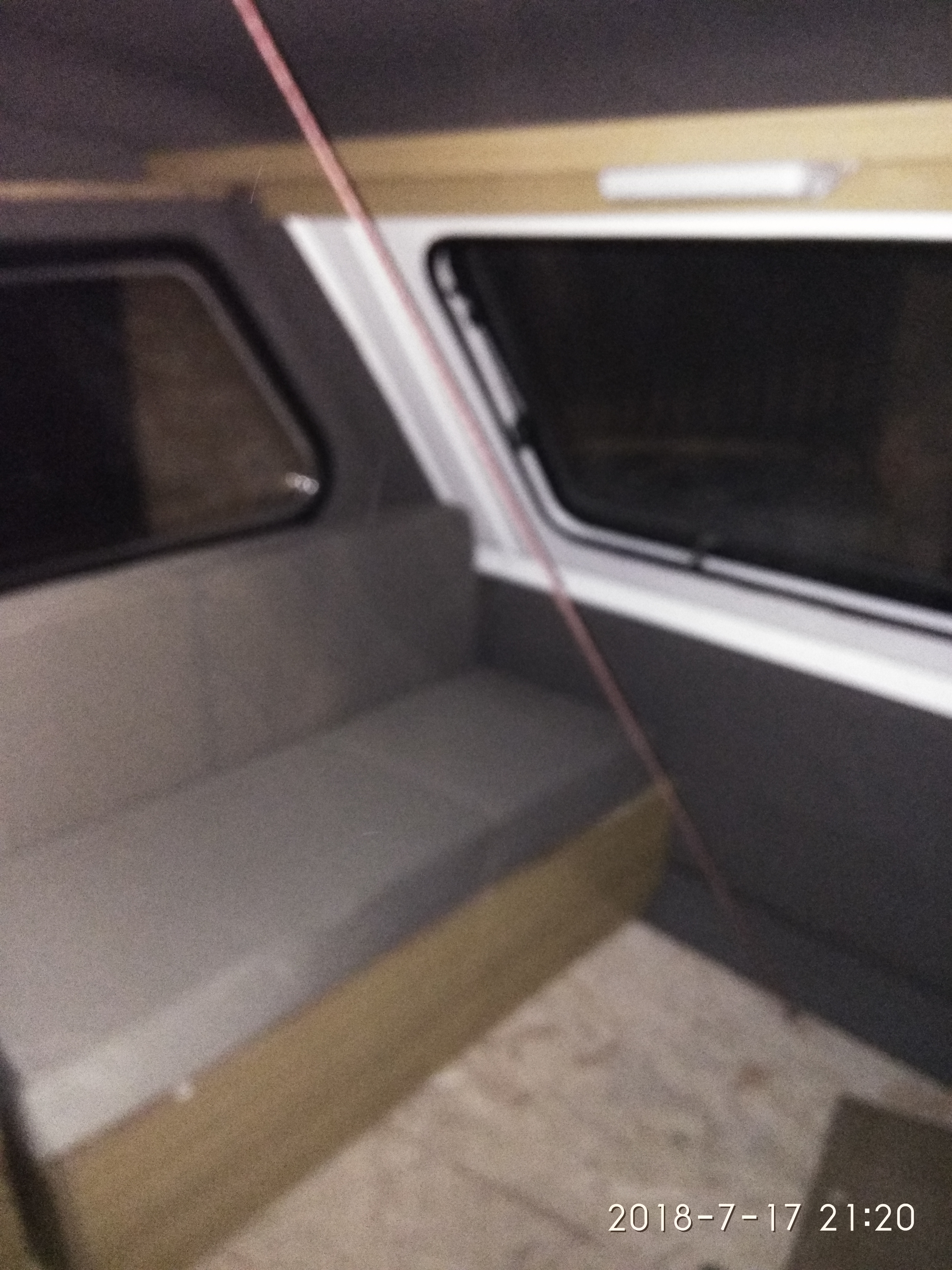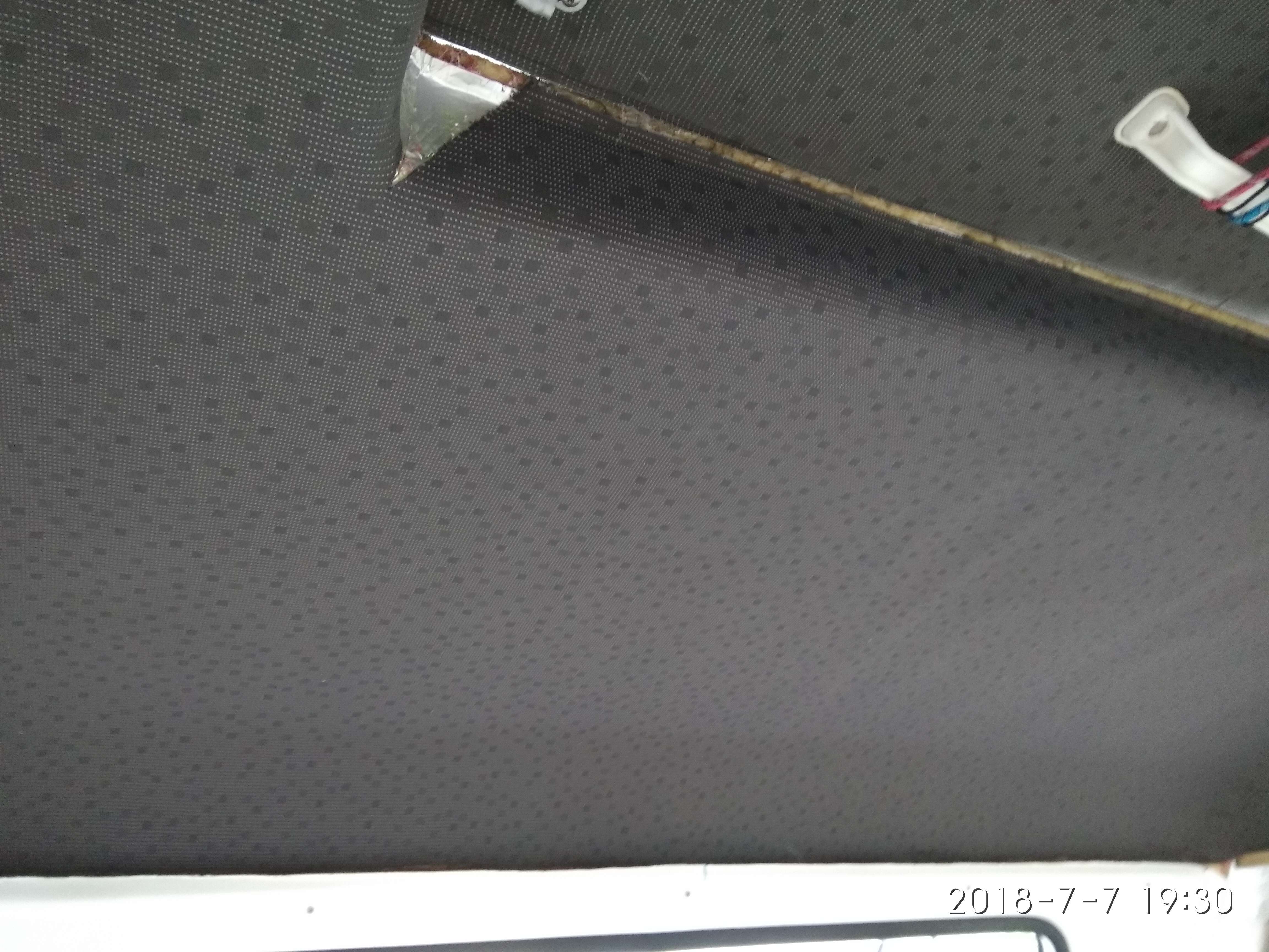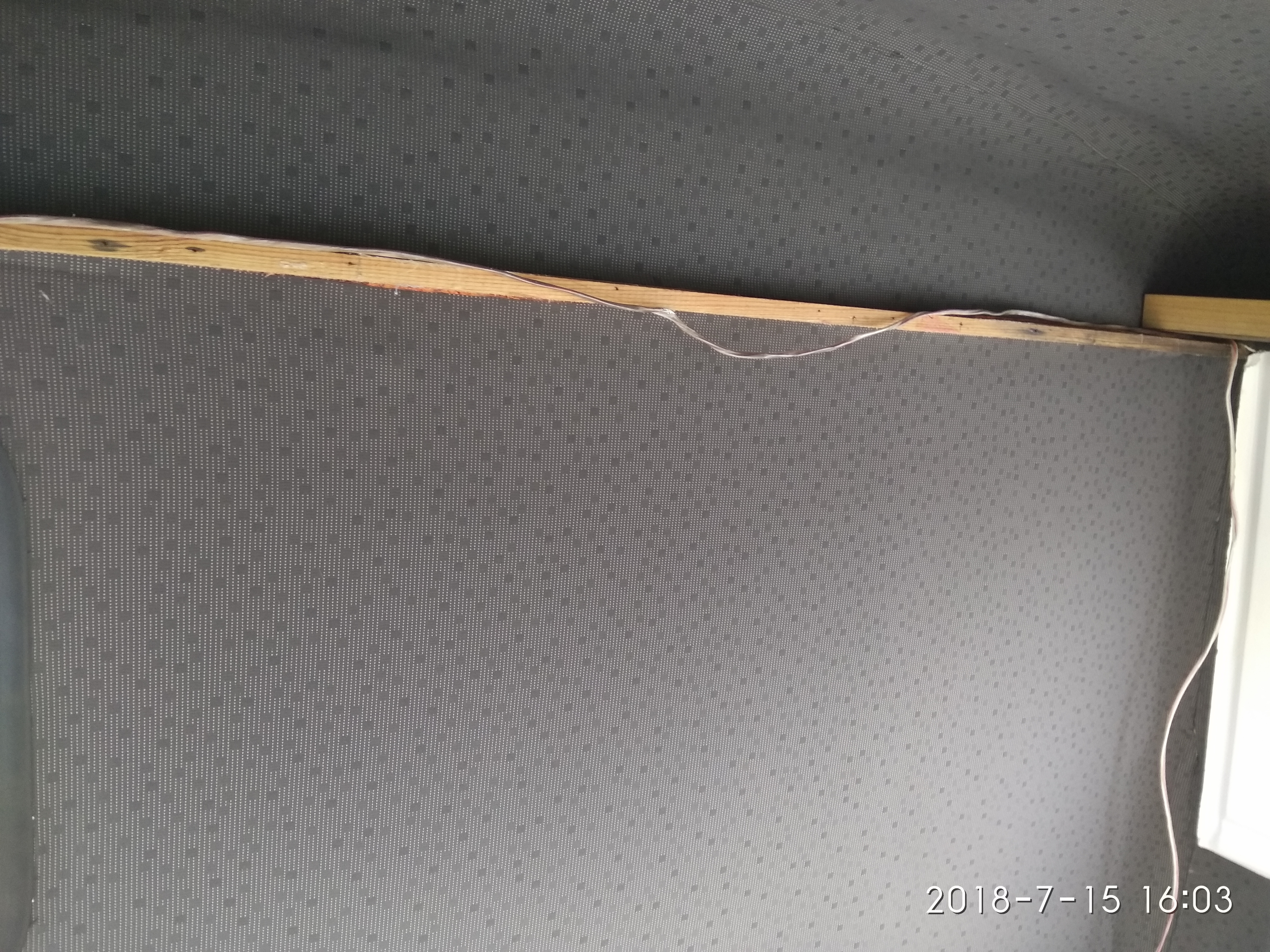 Kolejny etap wyklejanie tapicerki.Za radą kolegów zacząłem od dachu, najpierw klejąc boczne półksiężyce, następnie sufit w jednym kawałku. Tu potrzebowałem pomocy drugiej osoby, samemu problematyczna operacja. Na drugi ogień idą boki ścian, na końcu planuje przykleić elementy pod dużymi oknami. Ładnie zakryją i wyrównają krzywizny ścian.