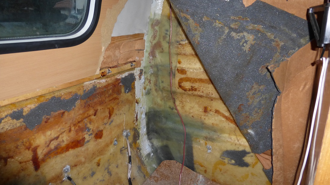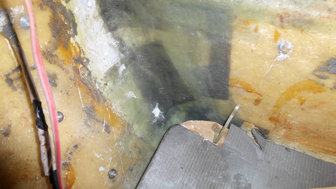 Po ustawieniu wszystkiego w docelowej pozycji oznaczyłem na laminacie położenie wszystkich kątowników po czym rozkręciłem wszystko aby najpierw właśnie je zamontować. Każdy kątownik jest na czterech śrubach M6, od wewnątrz podkładka powiększana i pojedyncza nakrętka. Uszczelnione jak zwykle u nas Soudaflex'em który elegancko powyłaził na boki po skręceniu, musi być szczelnie.