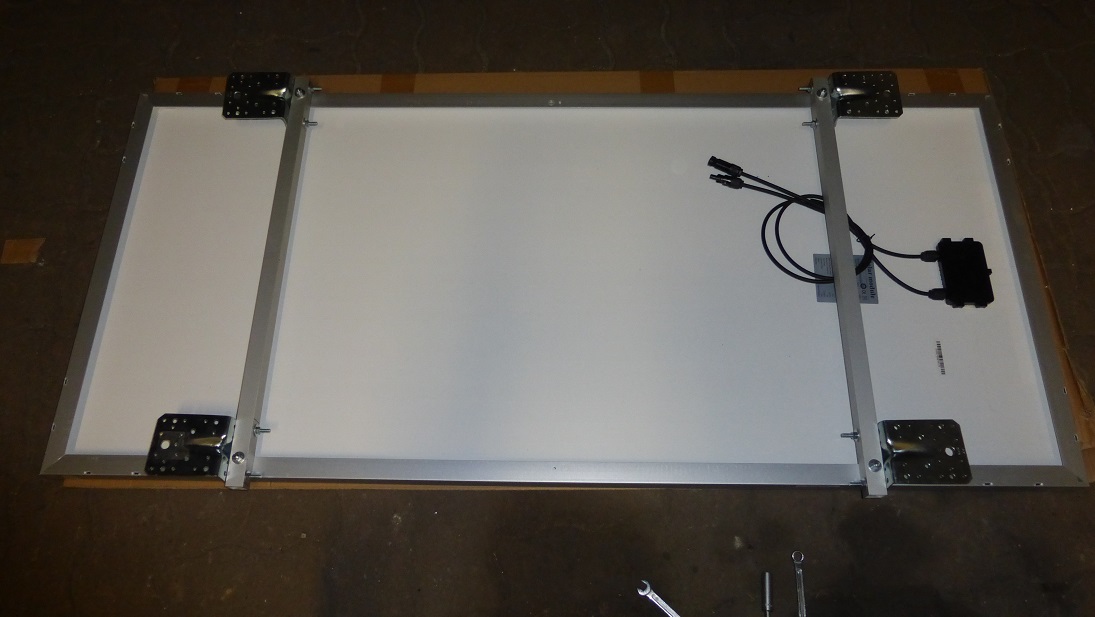 Kolejność montażu taka, że najpierw profile skręcone z panelem, podłączony przewód i złapany do profilu na opaski (później brakuje miejsca) i dopiero na dach i skręcanie z kątownikami.
