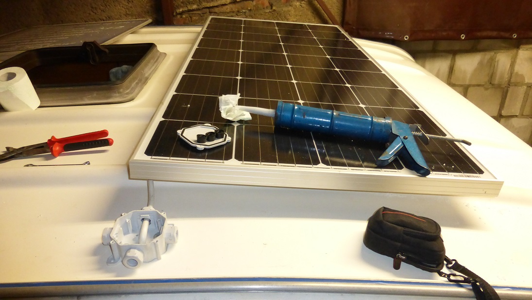 Był pomysł aby zastosować elastyczną setkę ale w końcu padło na niemal identyczny panel jak mam w 132. Instalacja była już przygotowana, wcześniej założyłem regulator PWM i akumulator lecz zamiast panelu był wpięty prostownik. Teraz nie będzie potrzebny więc wyleci a wraz z nim obecne, padaczkowate aku które zastąpi już kupiona, nowa bateryjka 75Ah.