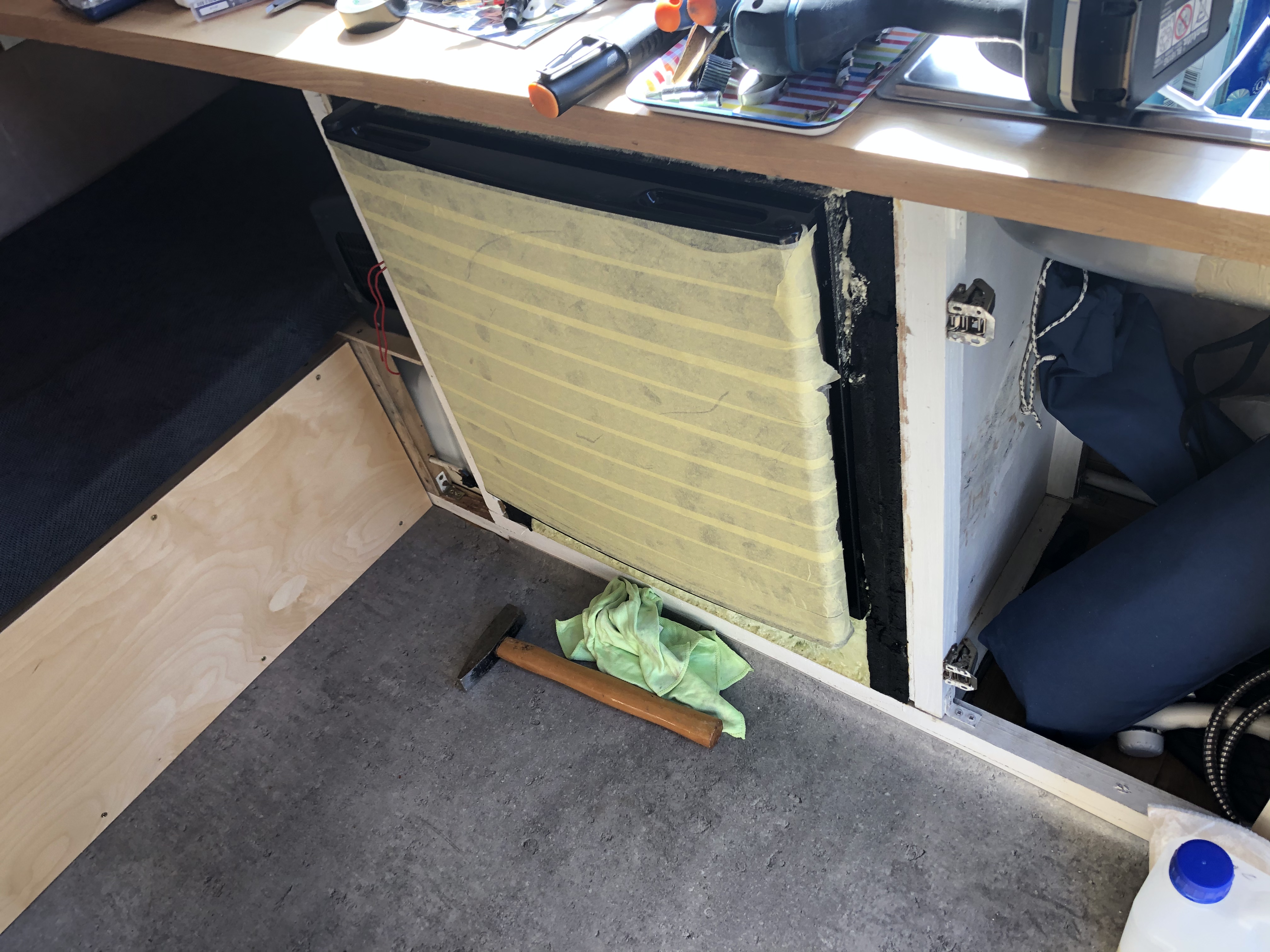 A lodówka jest na piankę poliuretanową wklejona/uszczelniona ???