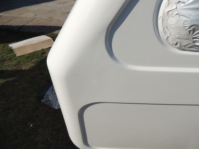 poniżej pierwsza wpadka początkującego lakiernika - podczas malowania zagiął mi się przewód powietrza i plunęło mi kroplami farby. ,,Zalałem" to większą ilością farby dzięki czemu krople nieco się rozlały. Jak farba wyschnie to spoleruję te krople i wtedy podejmę decyzję czy polerować całość.