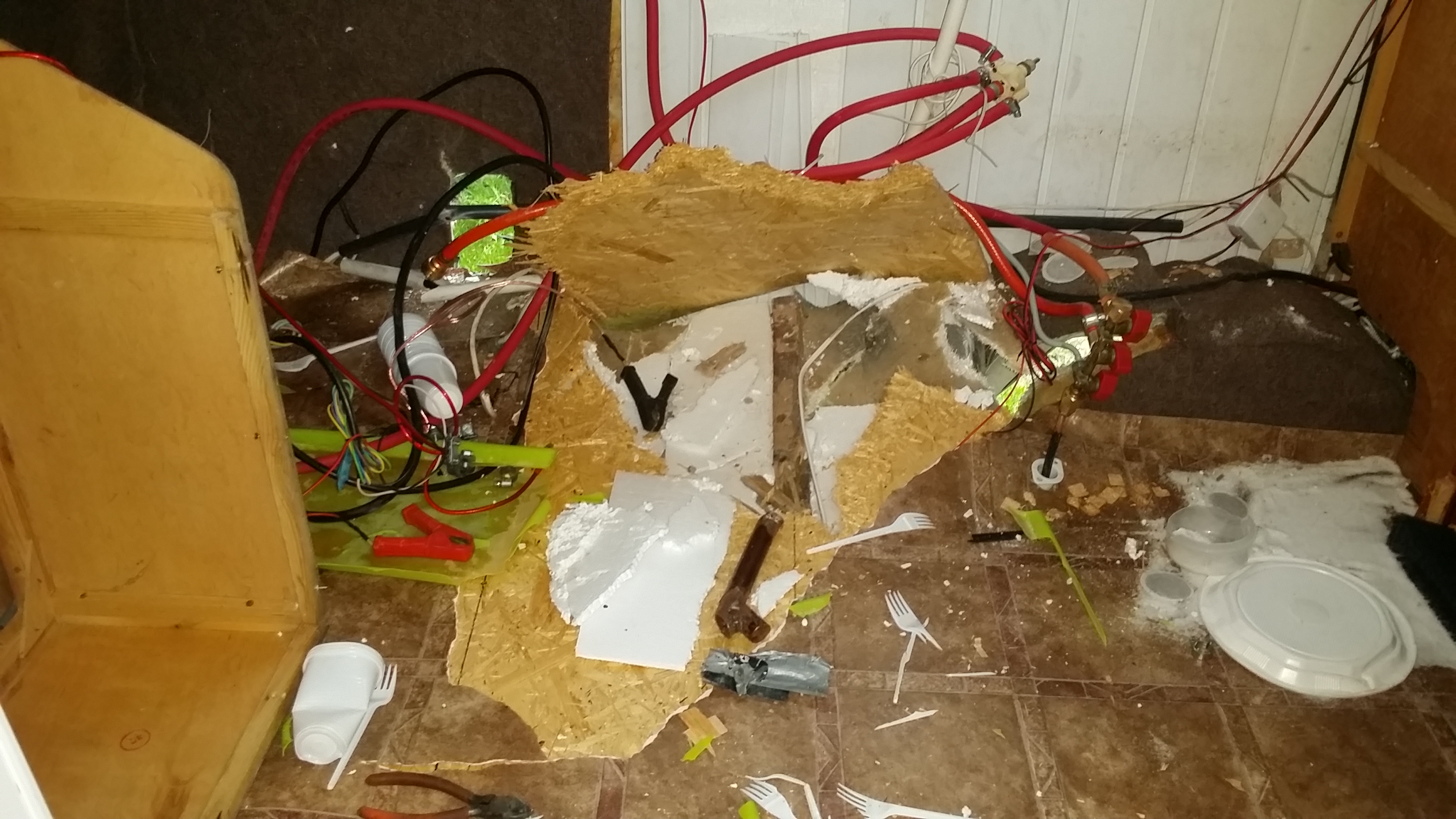 Jak nie wszyscy może wiedzą wyruszając na Zlot do Sielpii moja cepka uległa w pewnym stopniu zniszczeniu. Odkrecone kolo narobiło spustoszenia w postaci zniszczonych mebli uszkodzonego bojlera Trumy jak również lodówki. Nie mówiąc już o obszernym uszkodzeniu laminatu. Moja podróż przyczepa skończyła się na szczęście blisko domu wiec jednym z plusów było to ze po zakręconiu koła odstawiłam ja na podwórko. Ciekawym jest ze koła szukałem po uszkodzeniu około 2-3h dziś po przyjeździe z Sielpii kolejna godzinę-Alu koła nie znalazłem. ..