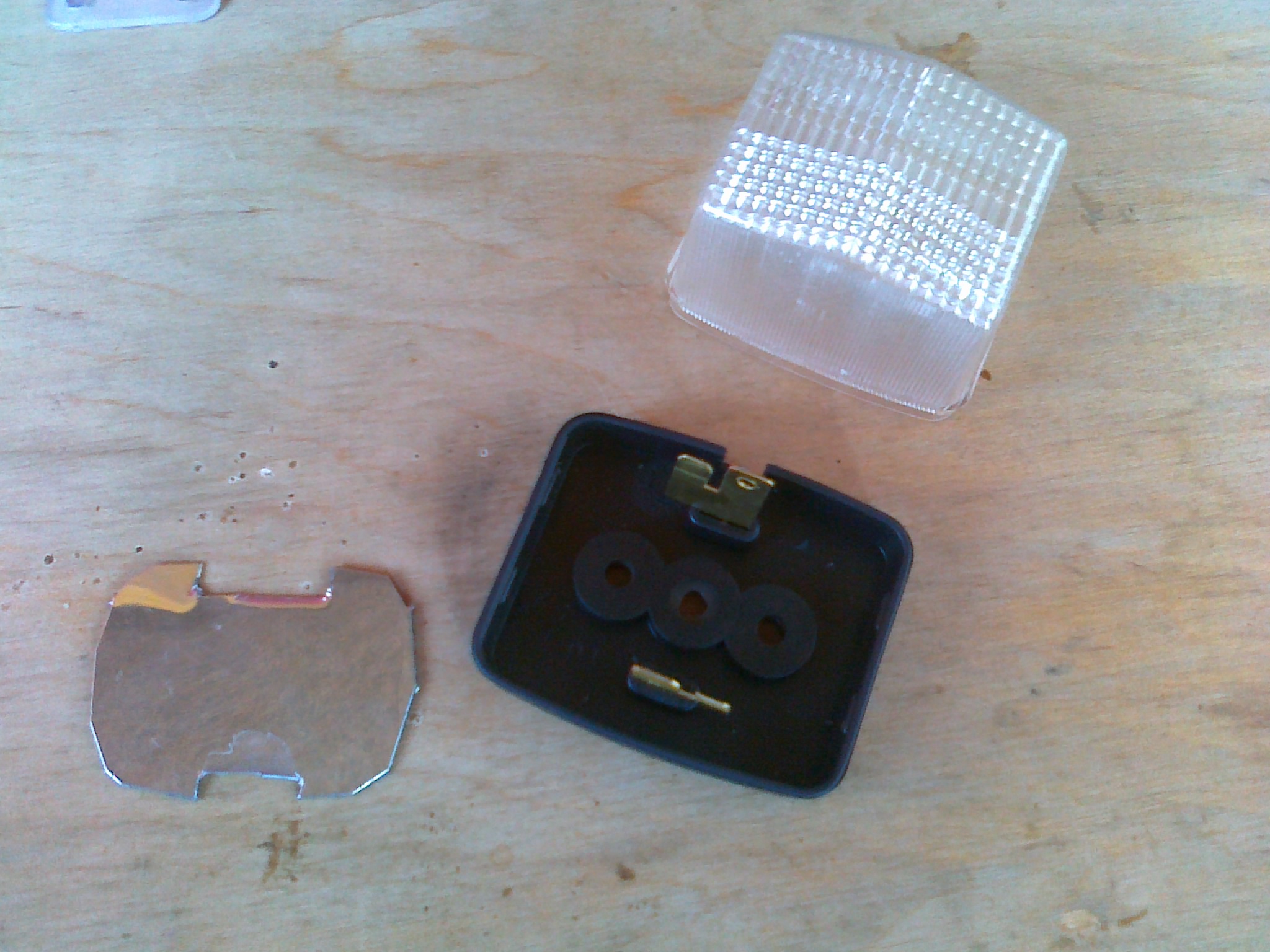 Wszystko ładnie, pięknie ale zaczęło mnie wkurzać ciągłe rozwijanie przewodu i mocowanie lampki by mieć światło w przedsionku lub pod daszkiem. Zacząłem szukać oświetlenia które można by było na stałe przytwierdzić do ściany przyczepy nie kalecząc jej zbytnio. Wszelkie lampy karawaningowe to wydatek minimum 65 PLN więc w związku z czym poszedłem w drugą stronę i zakupiłem za 5,50 PLN podpatrzoną lampę u CornBlumenBlau, dołożyłem do niej lustro odbijające które zostało pozyskane z opakowania po plasterkach na opryszczkę i lampa ma się dobrze i świetnie spełnia swoje zadanie. Przymocowana jest do przyczepy za pomocą jednej śruby w związku z czym w laminacie wymagało to tylko zrobienia dwóch dziurek jednej na śrubę a drugiej na kabel, natomiast wyłącznik do niej został umiejscowiony wewnątrz przyczepy w ścianie szafy.
